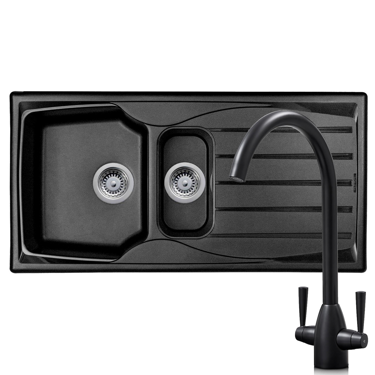 The Astracast Sierra range of fully reversible, composite sinks are high on quality but low on cost. They are manufactured from Teflite, a polypropylene material which is resistant to scratches, stains and heat. Not only are these sinks hard wearing, but they are also lightweight and can be installed on any work surface. This sink comes with a good sized main bowl and a smaller bowl that is useful for preparing fresh produce. Astracast are renowned globally for manufacturing high quality sinks and taps and this sink is no exception. This package includes the KT5BL, a dual lever mixer tap with a stylish black finish that will complement any kitchen.