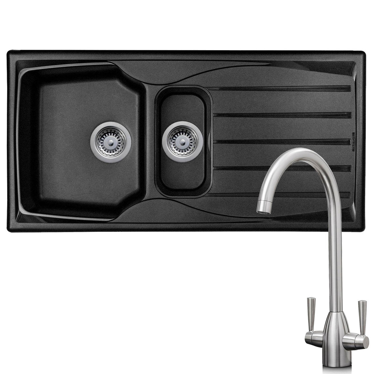 Astracast Sierra 1.5 Bowl Black Reversible Teflite Kitchen Sink & Waste Kit