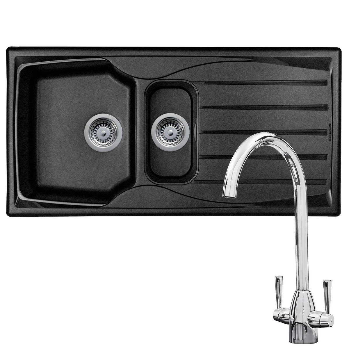 Astracast Sierra 1.5 Bowl Black Reversible Teflite Kitchen Sink & Waste Kit