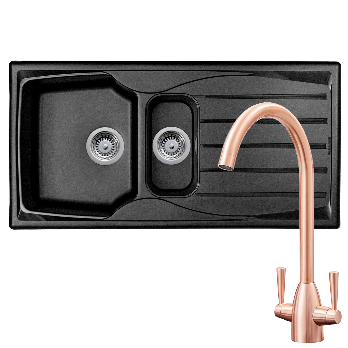 The Astracast Sierra range of fully reversible, composite sinks are high on quality but low on cost. They are manufactured from Teflite, a polypropylene material which is resistant to scratches, stains and heat. Not only are these sinks hard wearing, but they are also lightweight and can be installed on any work surface. This sink comes with a good sized main bowl and a smaller bowl that is useful for preparing fresh produce. Astracast are renowned globally for manufacturing high quality sinks and taps and this sink is no exception. This package includes the KT5CU, a dual lever mixer tap with a stylish copper finish that will complement any kitchen.