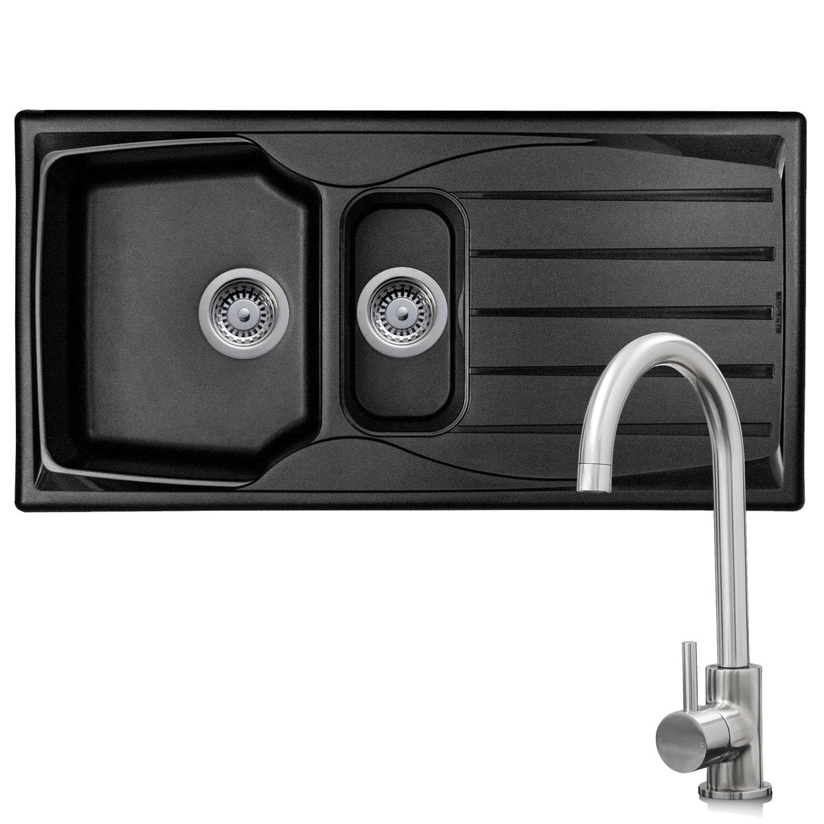 Astracast Sierra 1.5 Bowl Black Reversible Teflite Kitchen Sink & Waste Kit