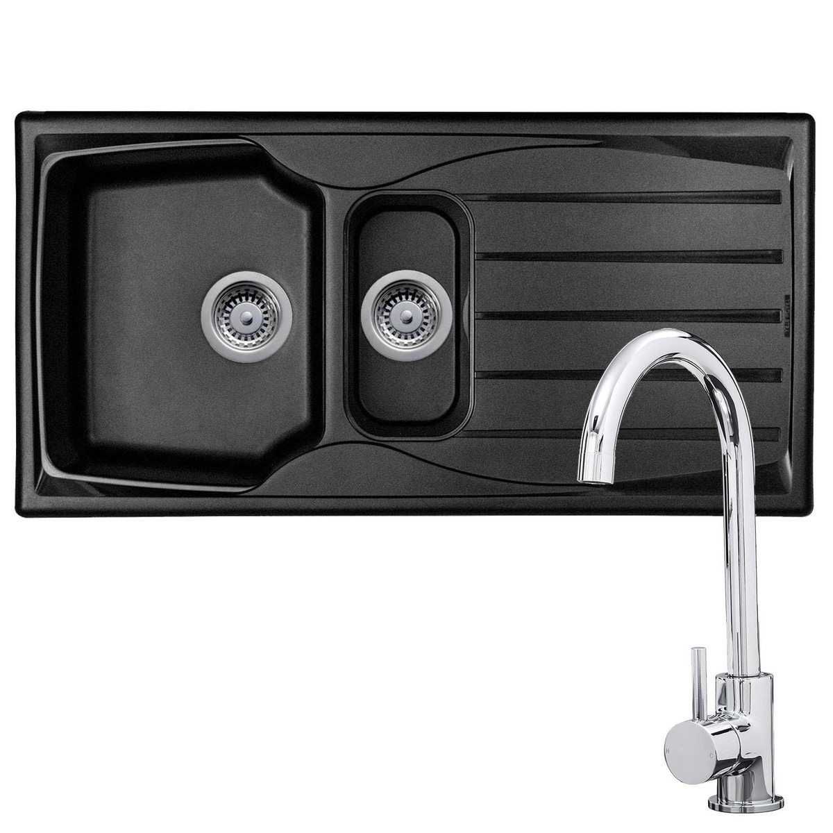 Astracast Sierra 1.5 Bowl Black Reversible Teflite Kitchen Sink & Waste Kit