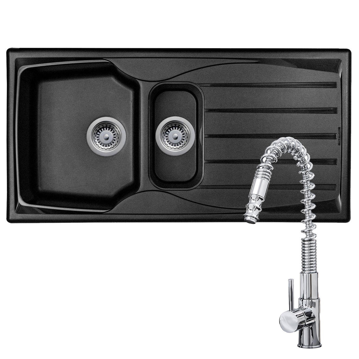 Astracast Sierra 1.5 Bowl Black Reversible Teflite Kitchen Sink & Waste Kit
