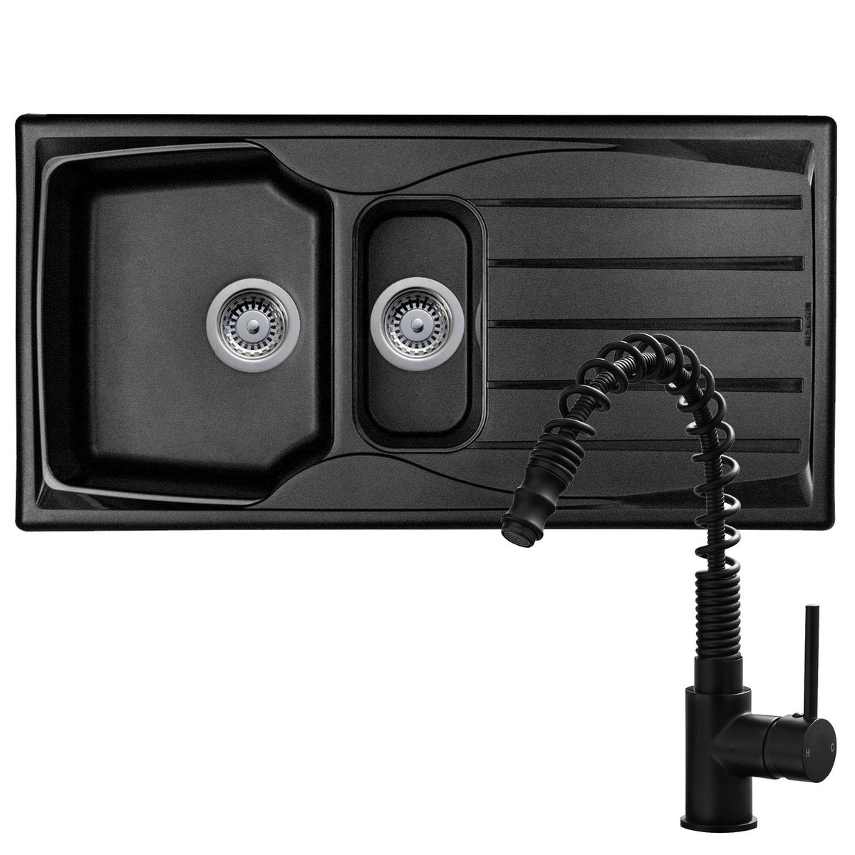 Astracast Sierra 1.5 Bowl Black Reversible Teflite Kitchen Sink & Waste Kit