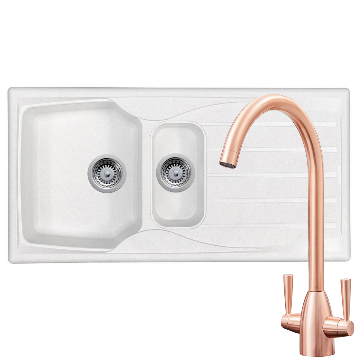 The Astracast Sierra range of fully reversible, composite sinks are high on quality but low on cost. They are manufactured from Teflite, a polypropylene material which is resistant to scratches, stains and heat. Not only are these sinks hard wearing, but they are also lightweight and can be installed on any work surface. This sink comes with a good sized main bowl and a smaller bowl that is useful for preparing fresh produce. Astracast are renowned globally for manufacturing high quality sinks and taps and this sink is no exception. This package comes with the SIA KT5CU twin lever mixer tap which has a stylish copper finish that is sure to complement the sink.