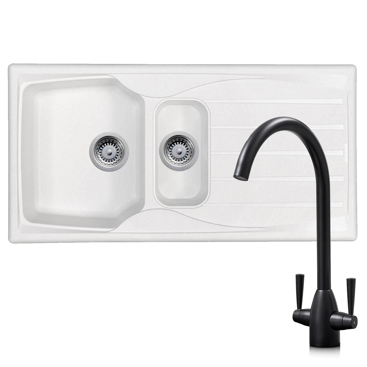 The Astracast Sierra range of fully reversible, composite sinks are high on quality but low on cost. They are manufactured from Teflite, a polypropylene material which is resistant to scratches, stains and heat. Not only are these sinks hard wearing, but they are also lightweight and can be installed on any work surface. This sink comes with a good sized main bowl and a smaller bowl that is useful for preparing fresh produce. Astracast are renowned globally for manufacturing high quality sinks and taps and this sink is no exception. This package includes the KT5BL, a dual lever mixer tap with a stylish black finish that will complement any kitchen.