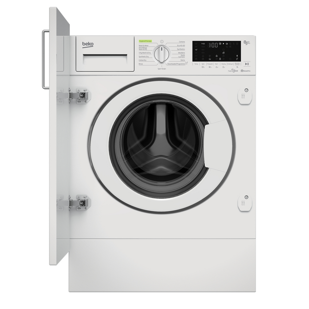 The Beko WDIK854421F Integrated Washer Dryer makes light work of laundry day with its large 8kg wash / 5kg dryer capacity. In a hurry? With Beko's Quick program, you won't have to wait hours for the wash to finish. You can clean a full 8kg load of laundry in just 28 minutes. In-built sensor drying technology detects and ends the programme when your clothes are perfectly dry, saving you both time and money.