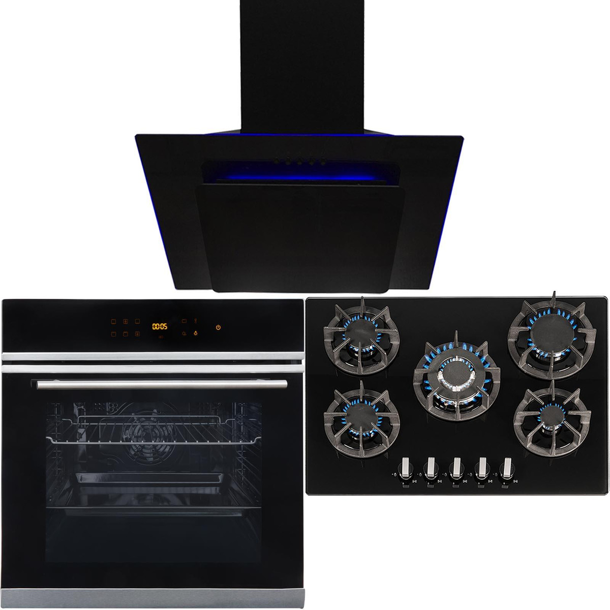 SIA R8 70cm Black 5 Burner Gas On Glass Kitchen Hob With Cast Iron Pan Stands