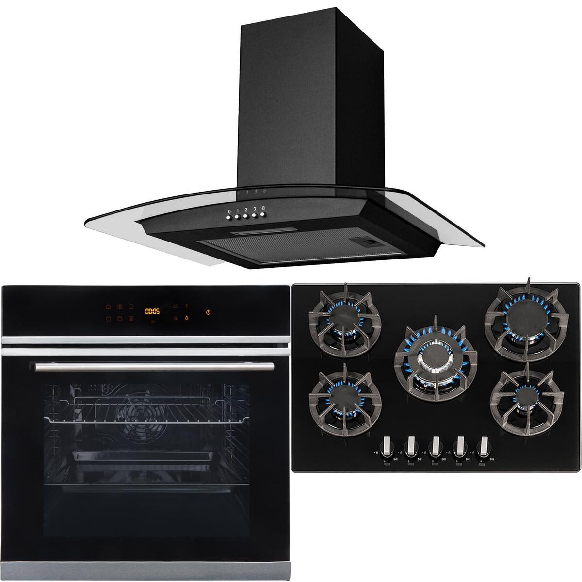 SIA CGH70BL 70cm Curved Glass Black LED Chimney Cooker Hood Extractor Fan