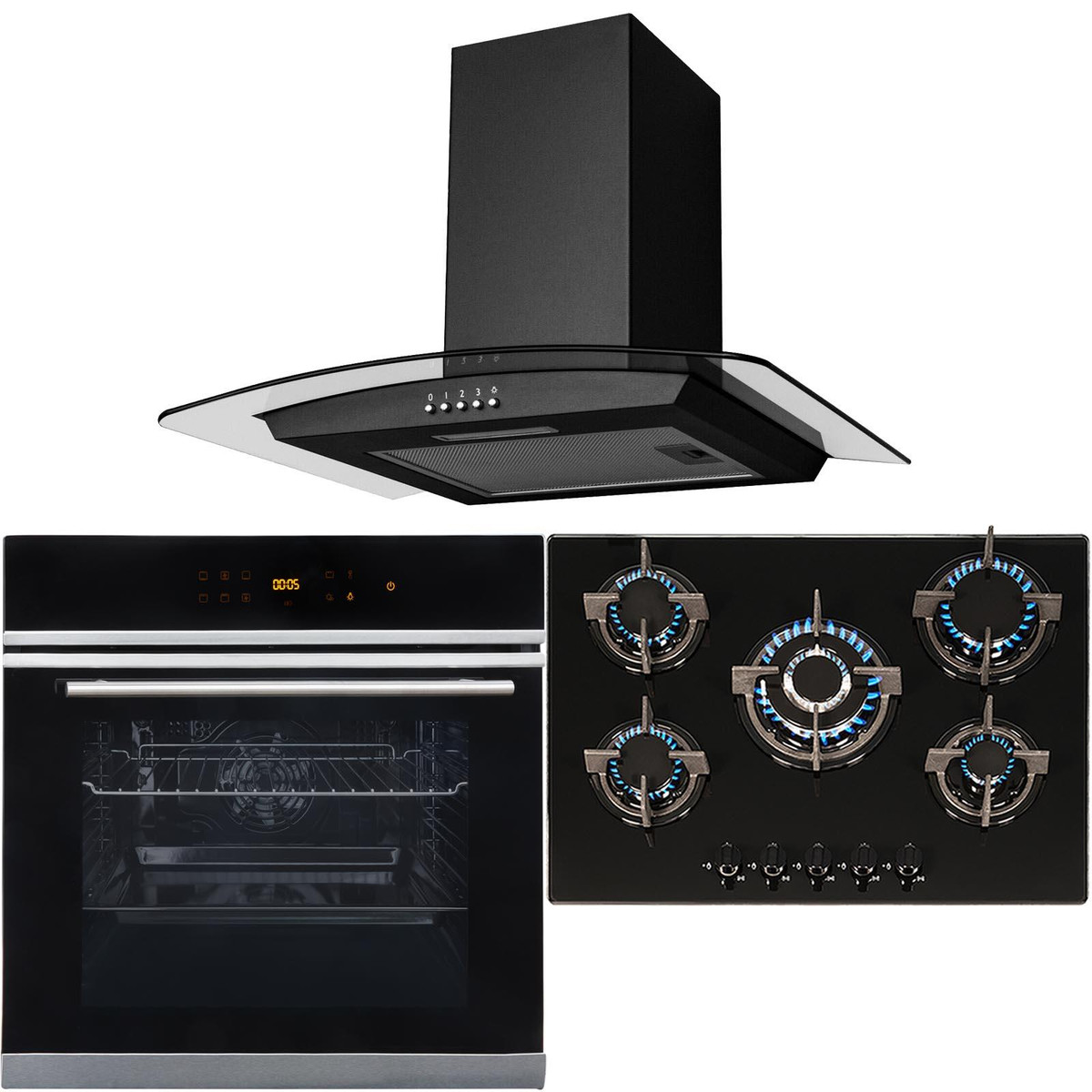 SIA CGH70BL 70cm Curved Glass Black LED Chimney Cooker Hood Extractor Fan