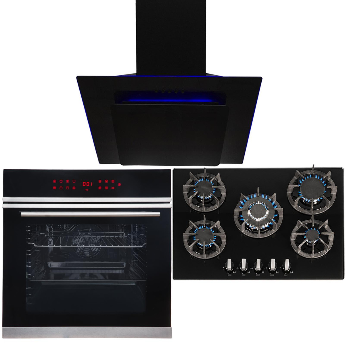 SIA R8 70cm Black 5 Burner Gas On Glass Kitchen Hob With Cast Iron Pan Stands