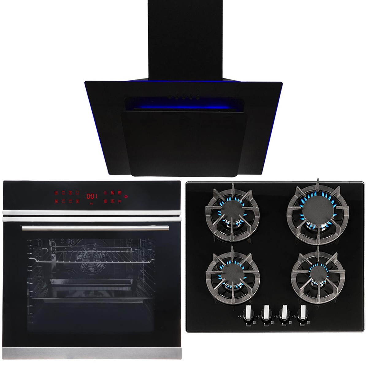 This 3-piece kitchen appliance pack combines stylish design with high functionality, making it the perfect set to revitalise any kitchen! The set comprises of a 13 function pyrolytic oven with a digital display, a black glass hob with 8-pronged pan stands and a multi-coloured LED cooker hood.