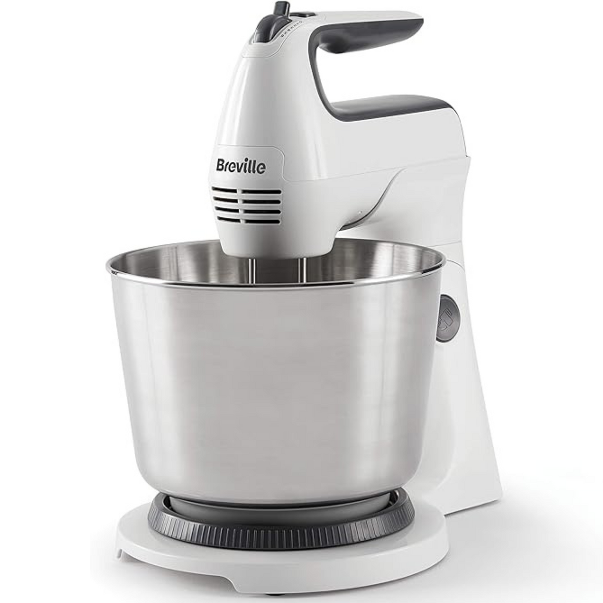 The Breville Classic Combo Mixer is a handy appliance that can be used as both a hand mixer and a stand mixer. You can easily make a variety of treats like cupcakes, pancakes, cookies, and pizza dough because it has a strong 250 W motor. The mixer is designed to mix your ingredients evenly, and it's easy to change the attachments with the tilt-locking head and one-touch eject button. There are 6 different speeds to choose from, and the Turbo Boost function gives an extra burst of power when you need it. When you're done, you can toss the stainless steel bowl, beaters, dough hooks, and whisk in the dishwasher for an easy cleanup.