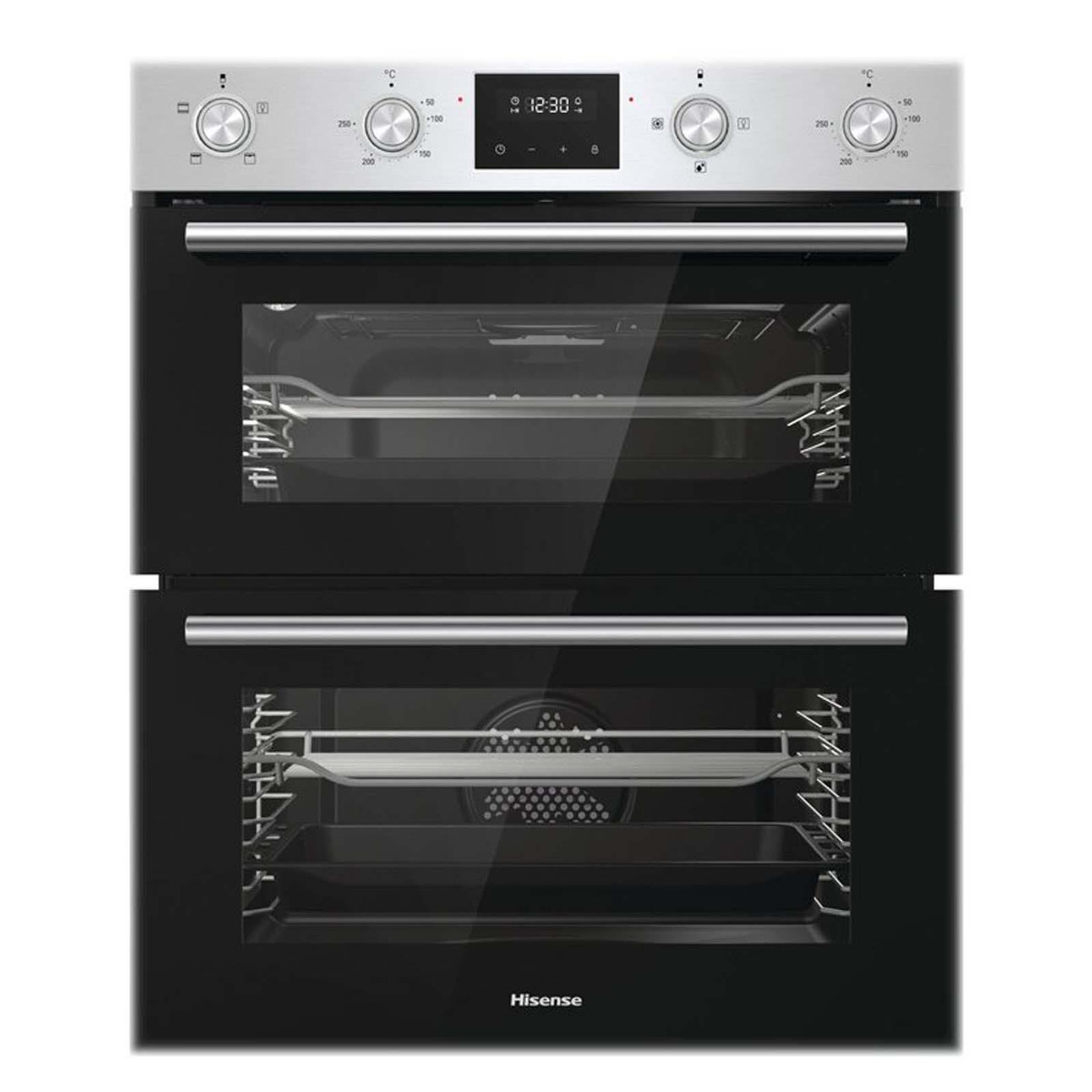 The Hisense BID79222CXUK is a stylish yet functional, built-in double oven. With a modern black glass front and stainless steel accessories it will blend in with any kitchens décor.