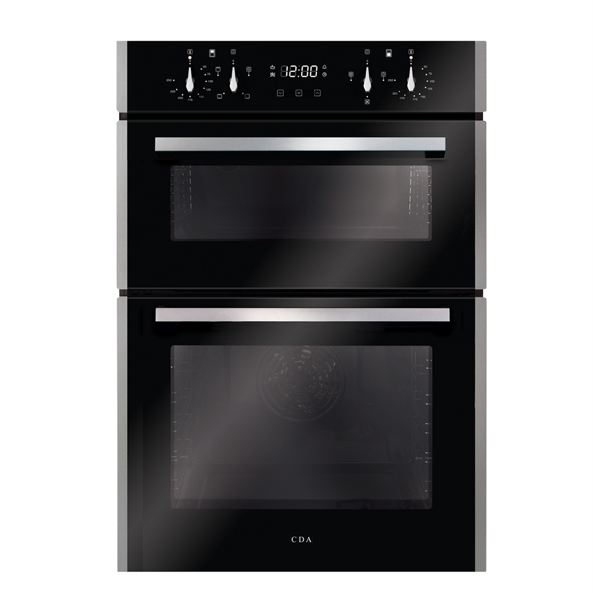 The CDA DC941SS is a built-in double oven that offers up a number of useful features so you can cook delicious meals every day. It is designed to fit into a cupboard unit and its sleek black design will complement almost any kitchen. It has two separate, large cavities so you can cook multiple dishes at once and the 'A' energy rating will help you keep your electrical bill low.