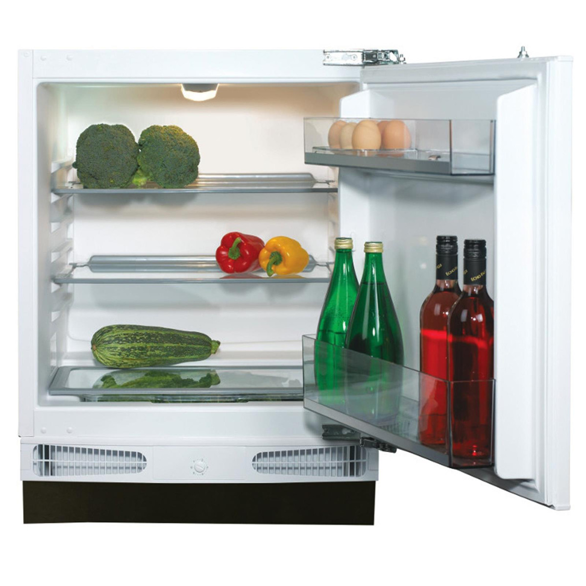 The CDA FW321 is a 60cm integrated larder fridge with a 136L capacity. It features 3 stainless steel edged glass shelves, a salad crisper and bottle compartment.