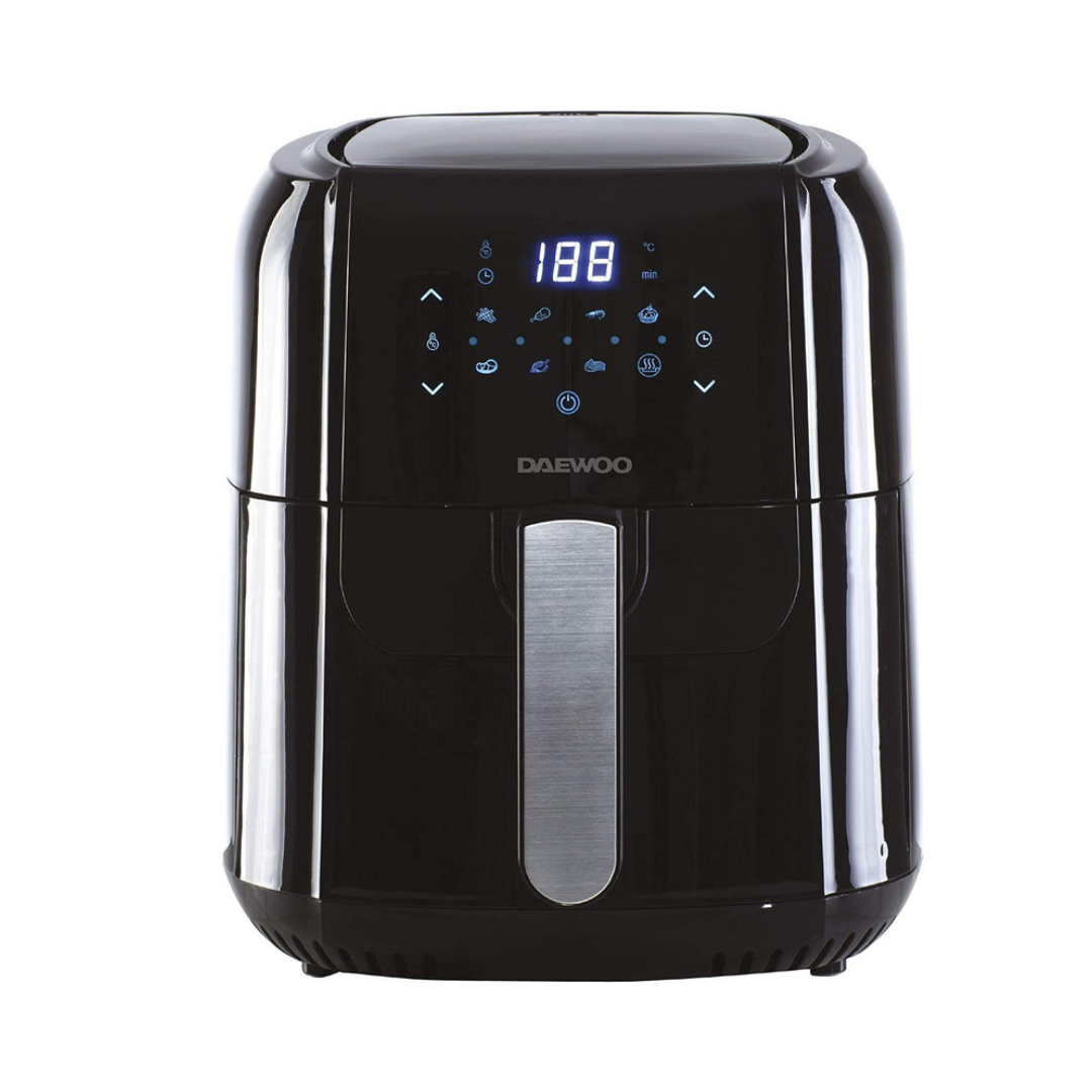 Daewoo's Healthy Living 5.5L Digital Air Fryer SDA1804GE cooked perfectly every time by using the preset cooking functions. Be it chicken, fish, vegetables or chips, there's a programme designed to make the most of your healthy air fryer. Thanks to its large 5.5 litre capacity the Daewoo Air Fryer allows you to cook a variety of healthy family meals with no fuss, and very little mess. Thanks to its powerful 1400 watts, and Rapid Air Circulation, this low fat family air fryer can reach between 80-200c, giving a thorough and even cook.