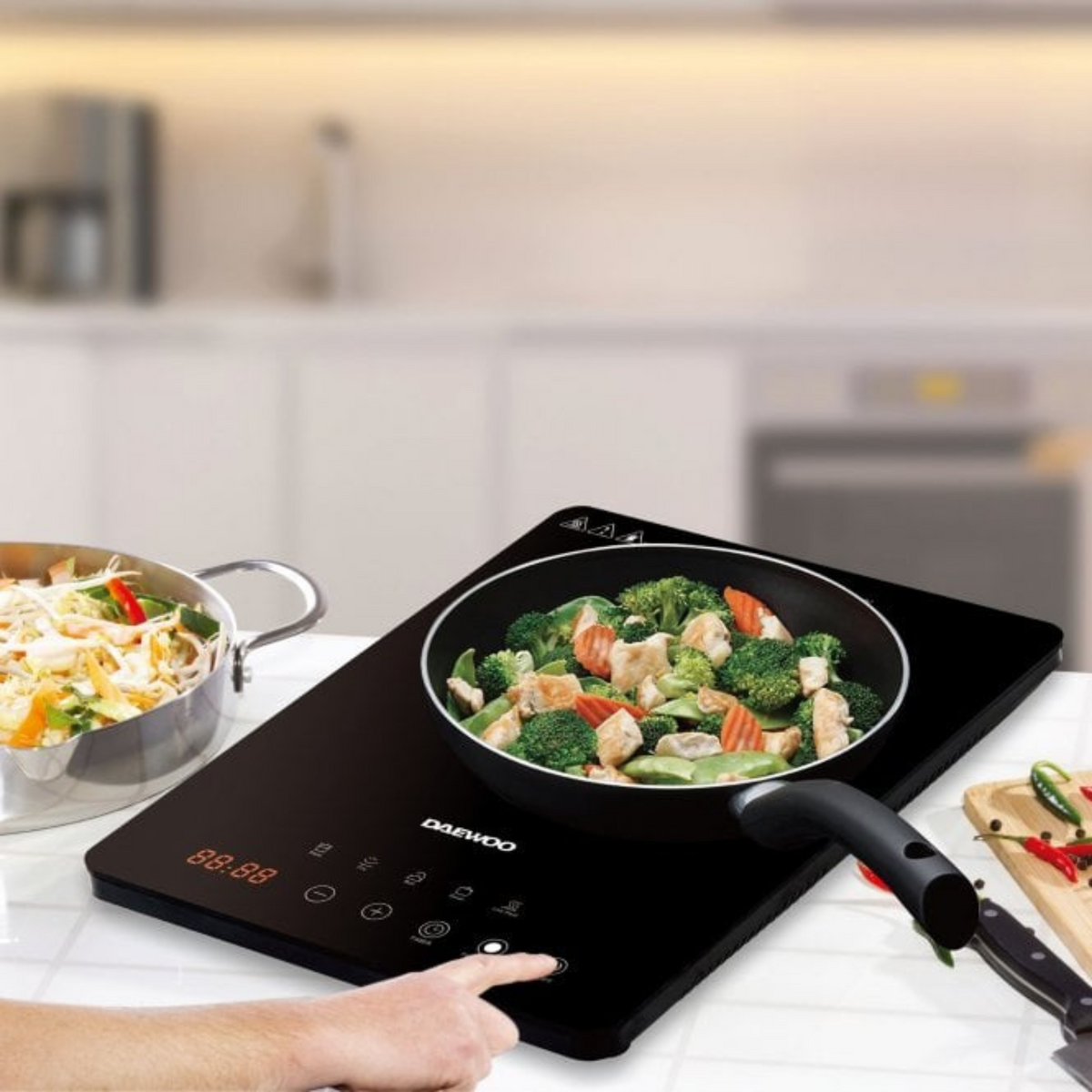 Boost your cooking experience with the Daewoo SDA1805GE Single Induction Hot Plate. This innovative appliance harnesses the power of induction technology, heating your pan directly for lightning-fast results so you can get cooking in seconds!