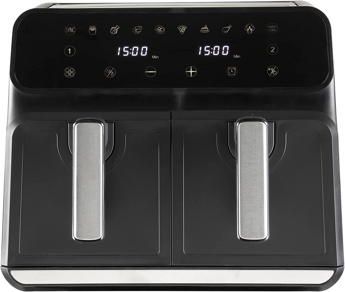 The air fryer includes features for Sync Finish and Dual Cooking, meaning you can match the end time so your food is ready at the same time. The rapid air circulation means you can create thoroughly cooked food with a crispy texture, with little or no oil, meaning your meals are healthy and tasty. It's versatile too, as well as crispy chips and fries, you can cook chicken, fish, vegetables, even cake.