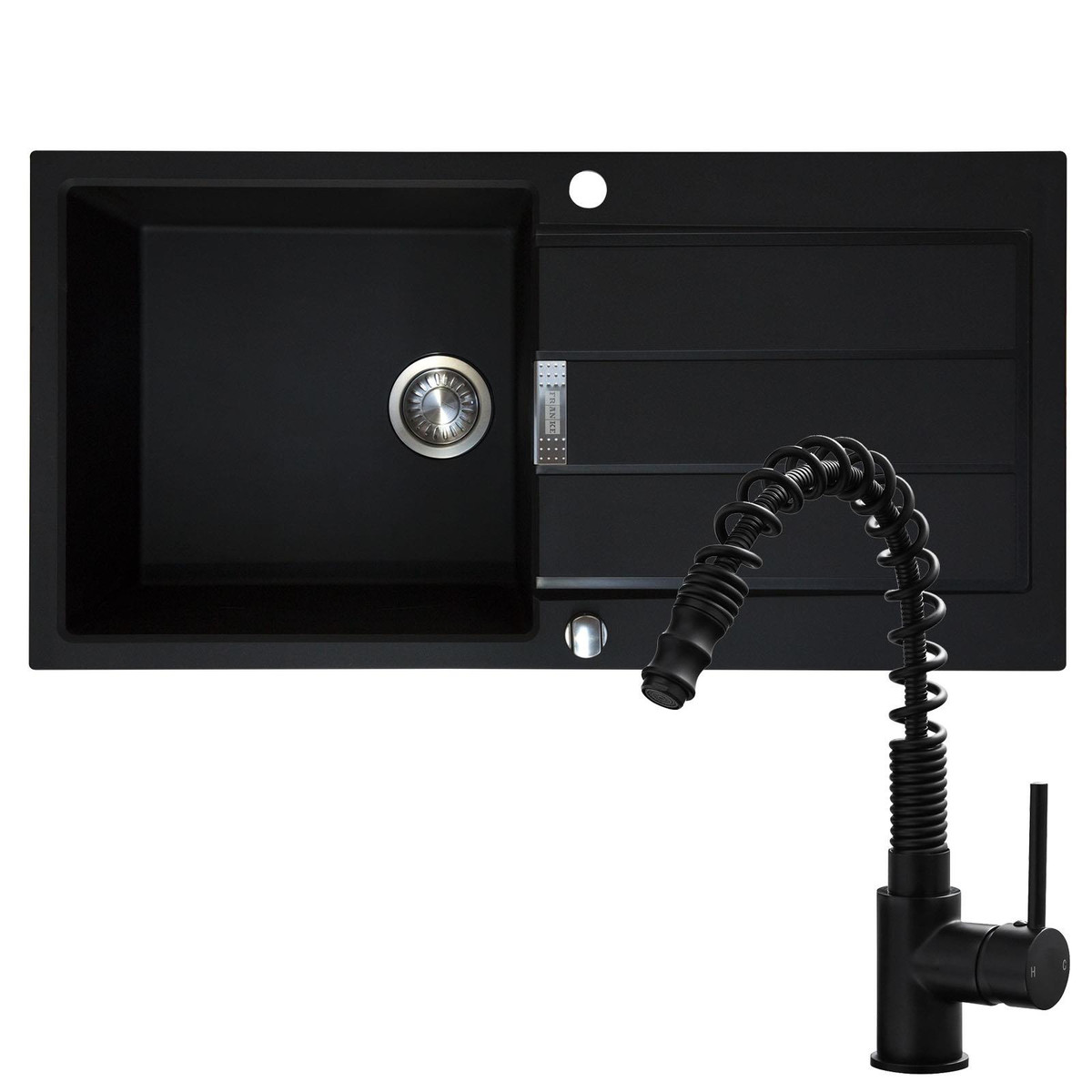 The Franke Sirius range is manufactured from Tectonite, a revolutionary composite material created by Franke, who continue to blend style with functionality. It has the strength and durability of granite without the heavy weight and brittleness, this means that this sink is suitable for almost any work surface. The inclusive pop-up strainer waste mechanism allows you to empty the bowl without having to reach to the bottom of the sink. This package comes with the SIA KT7BL single lever, pull-out spray tap with with a black finish that will complement the sink perfectly.