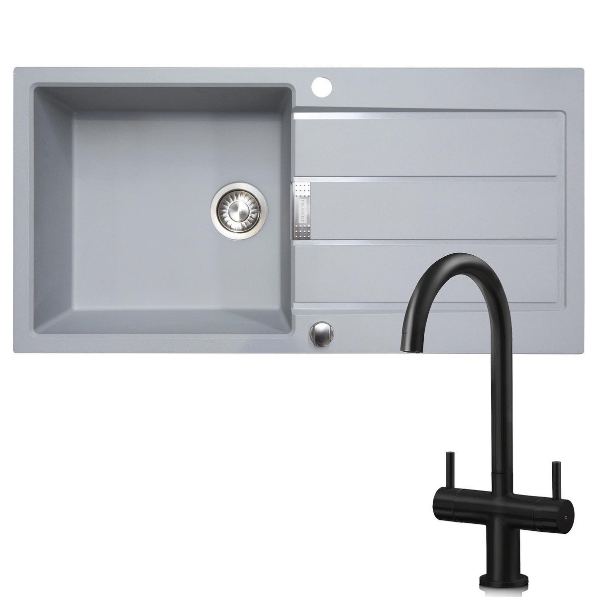 The Franke Sirius range is manufactured from Tectonite, a revolutionary composite material created by Franke, who continue to blend style with functionality. It has the strength and durability of granite without the heavyweight and brittleness, this means that this sink is suitable for almost any work surface. The inclusive pop-up strainer waste mechanism allows you to empty the bowl without having to reach to the bottom of the sink. The sink is complemented by the SIA KT3BL, a twin lever monobloc kitchen mixer tap with a modern design and a black finish that will add a contemporary look to any kitchen.
