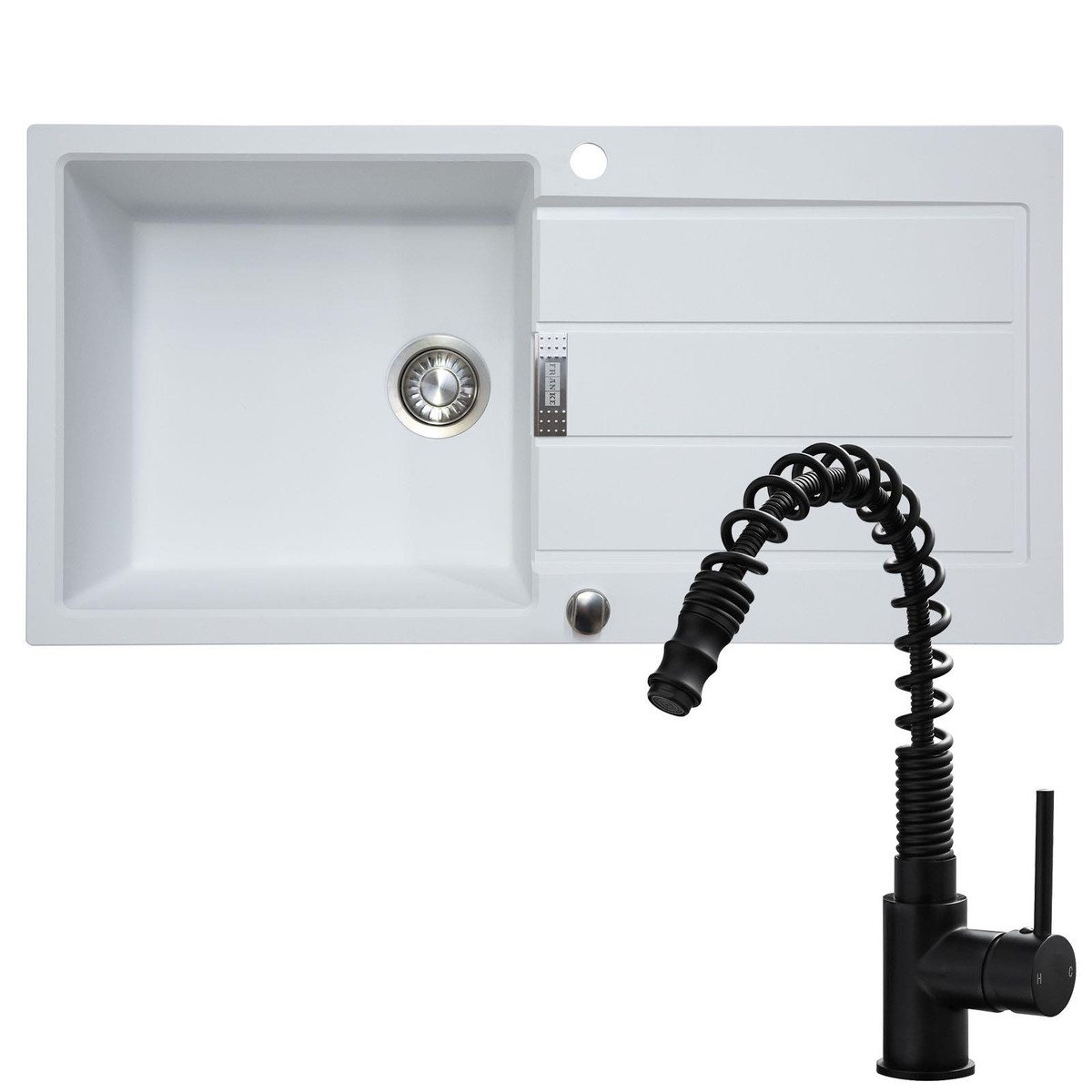 The Franke Sirius range is manufactured from Tectonite, a revolutionary composite material created by Franke, who continue to blend style with functionality. It has the strength and durability of granite without the heavy weight and brittleness, this means that this sink is suitable for almost any work surface. The inclusive pop-up strainer waste mechanism allows you to empty the bowl without having to reach to the bottom of the sink. This package comes with the SIA KT7BL single lever, pull-out spray tap with with a black finish that will complement the sink perfectly.