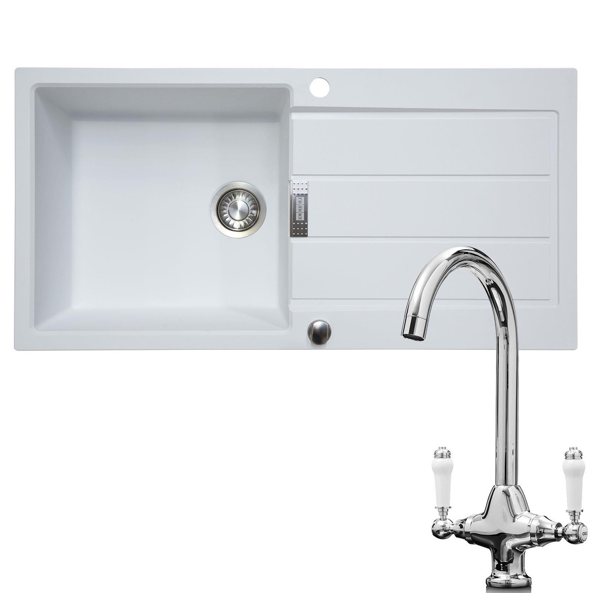 The Franke Sirius range is manufactured from Tectonite, a revolutionary composite material created by Franke, who continue to blend style with functionality. It has the strength and durability of granite without the heavyweight and brittleness, this means that this sink is suitable for almost any work surface. The inclusive pop-up strainer waste mechanism allows you to empty the bowl without having to reach to the bottom of the sink. This package includes the KT2, a twin lever mixer tap with a stylish chrome finish and white handles that complements the sink perfectly.