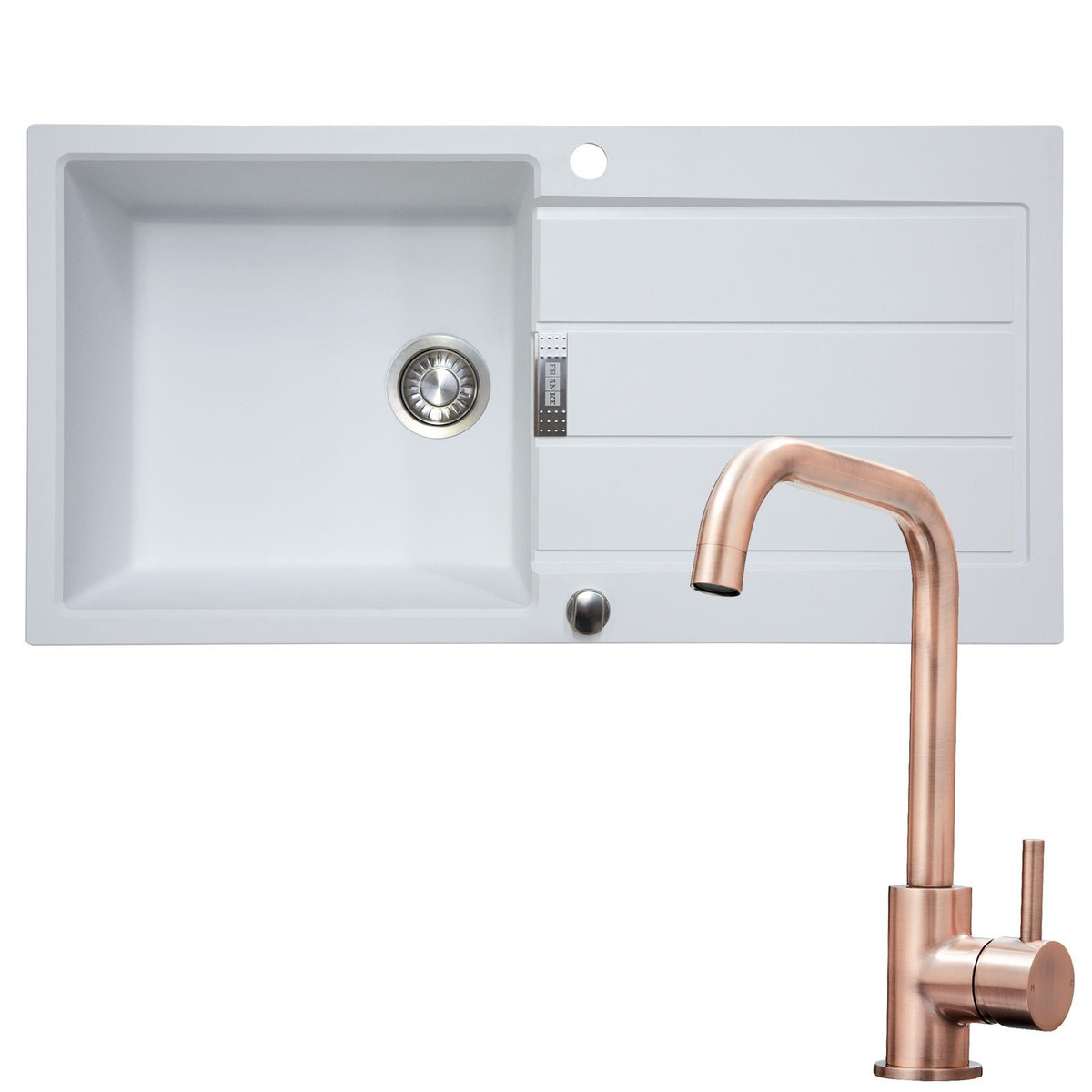 The Franke Sirius range is manufactured from Tectonite, a revolutionary composite material created by Franke, who continue to blend style with functionality. It has the strength and durability of granite without the heavyweight and brittleness, this means that this sink is suitable for almost any work surface. The inclusive pop-up strainer waste mechanism allows you to empty the bowl without having to reach to the bottom of the sink. The sink is complemented by the SIA KT6CUD tap that has a modern, copper finish that will add a contemporary look to any kitchen.