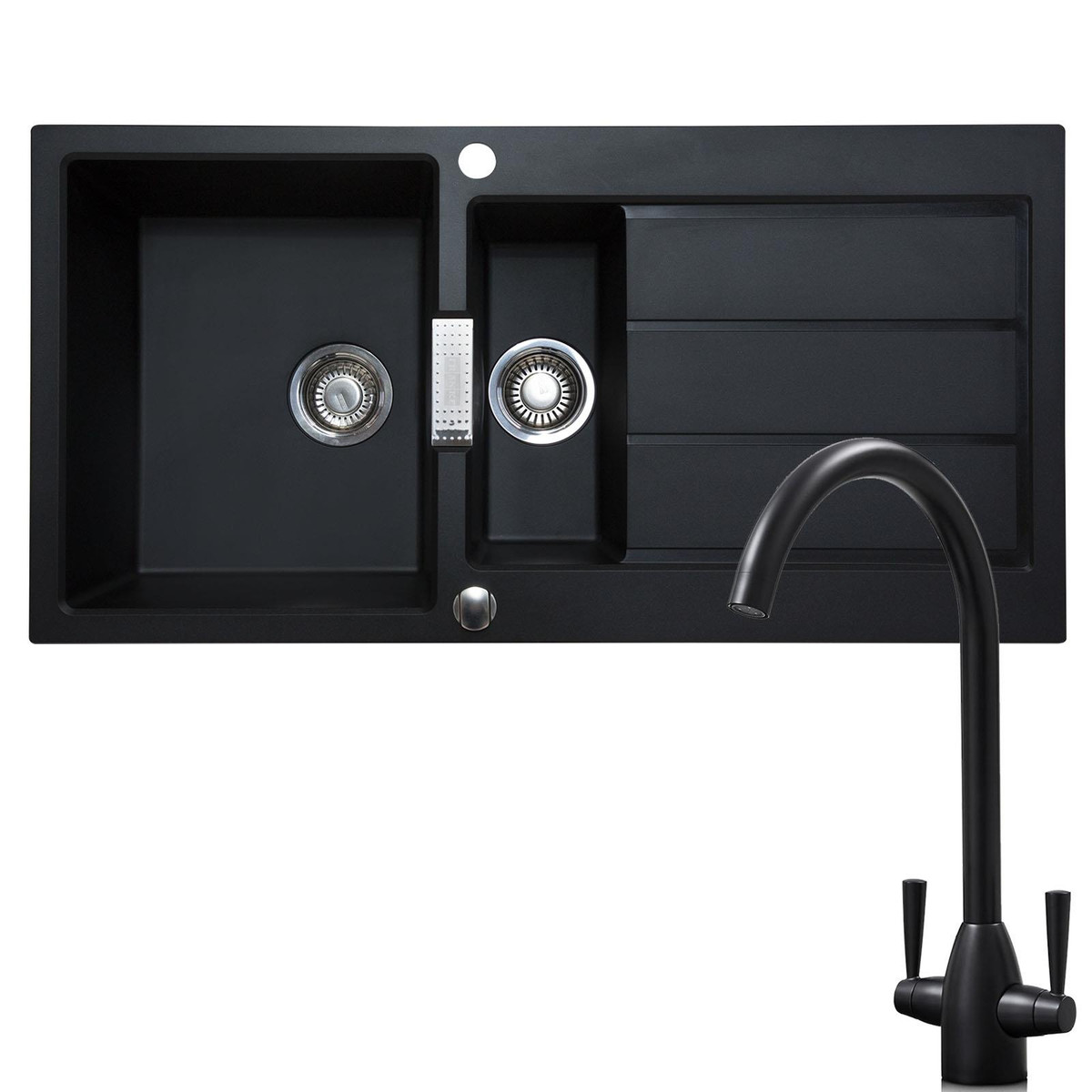 The S2D651CB-KT5BL pack consists of a 1.5 bowl black tectonite reversible kitchen sink and a SIA KT5BL mixer tap. The sink is manufactured from Tectonite, a revolutionary composite material that has the strength and durability of granite, without the heavyweight and brittleness. Franke is a leading expert in producing high-quality kitchen appliances and they continue to blend style with functionality in all of their sinks. This package comes with the SIA KT5BL twin lever mixer tap which has a stylish black finish that is sure to complement the sink.