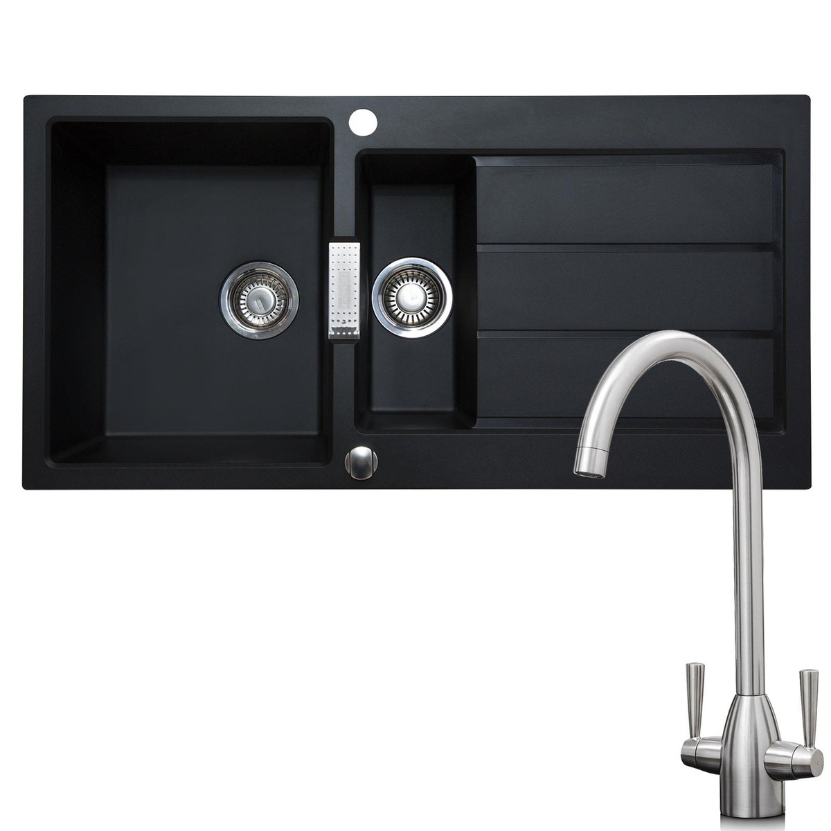 The S2D651CB-KT5BN pack consists of a 1.5 bowl black tectonite reversible kitchen sink and a SIA KT5BN mixer tap. The sink is manufactured from Tectonite, a revolutionary composite material that has the strength and durability of granite, without the heavyweight and brittleness. Franke is a leading expert in producing high-quality kitchen appliances and they continue to blend style with functionality in all of their sinks. This package comes with the SIA KT5BN twin lever mixer tap which has a stylish brushed nickel finish that is sure to complement the sink.