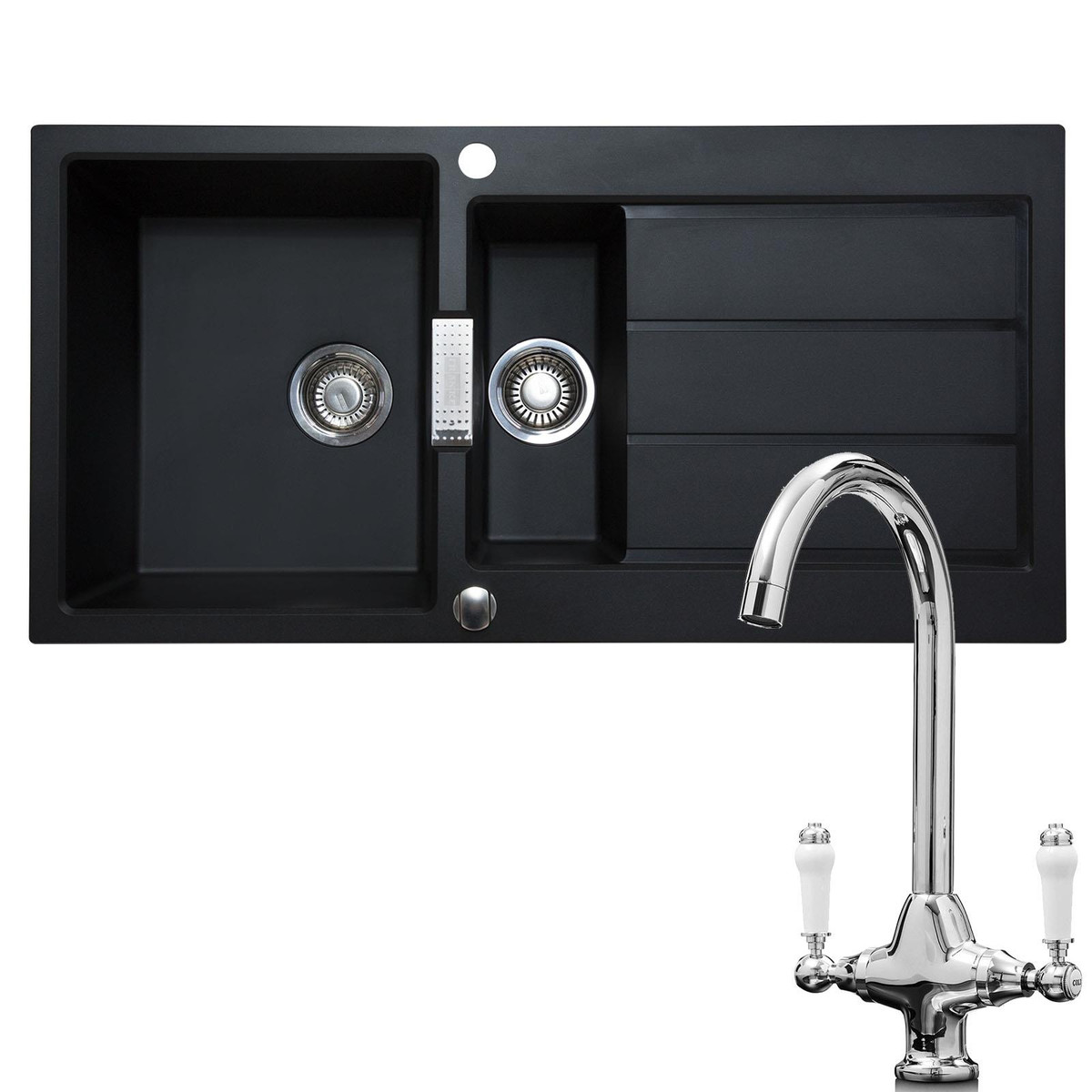 Franke Sirius S2D651CB 1.5 Bowl Black Tectonite Reversible Kitchen Sink & Waste