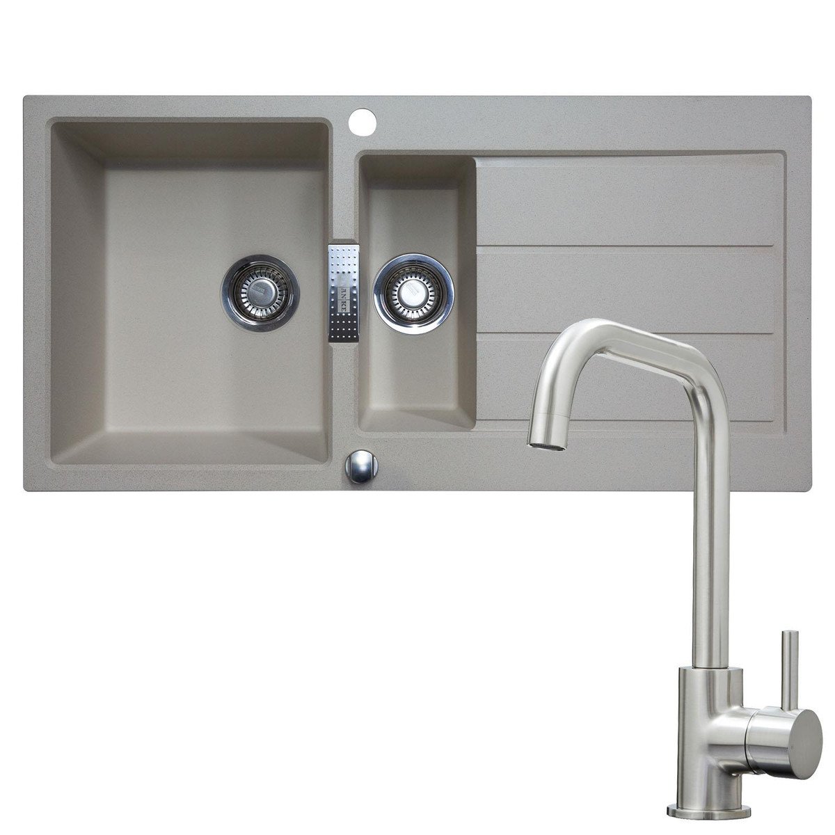 The Franke Sirius range is manufactured from Tectonite, a revolutionary composite material created by Franke, who continue to blend style with functionality. It has the strength and durability of granite without the heavyweight and brittleness, this means that this sink is suitable for almost any work surface. The inclusive pop-up strainer waste mechanism allows you to empty the bowl without having to reach to the bottom of the sink. The sink is complemented by the SIA KT6BND tap that has a modern, brushed nickel finish that will add a contemporary look to any kitchen.