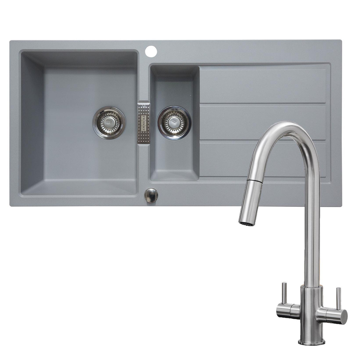 Franke Sirius S2D651TS 1.5 Bowl Stone Grey Tectonite Reversible Kitchen Sink & Waste