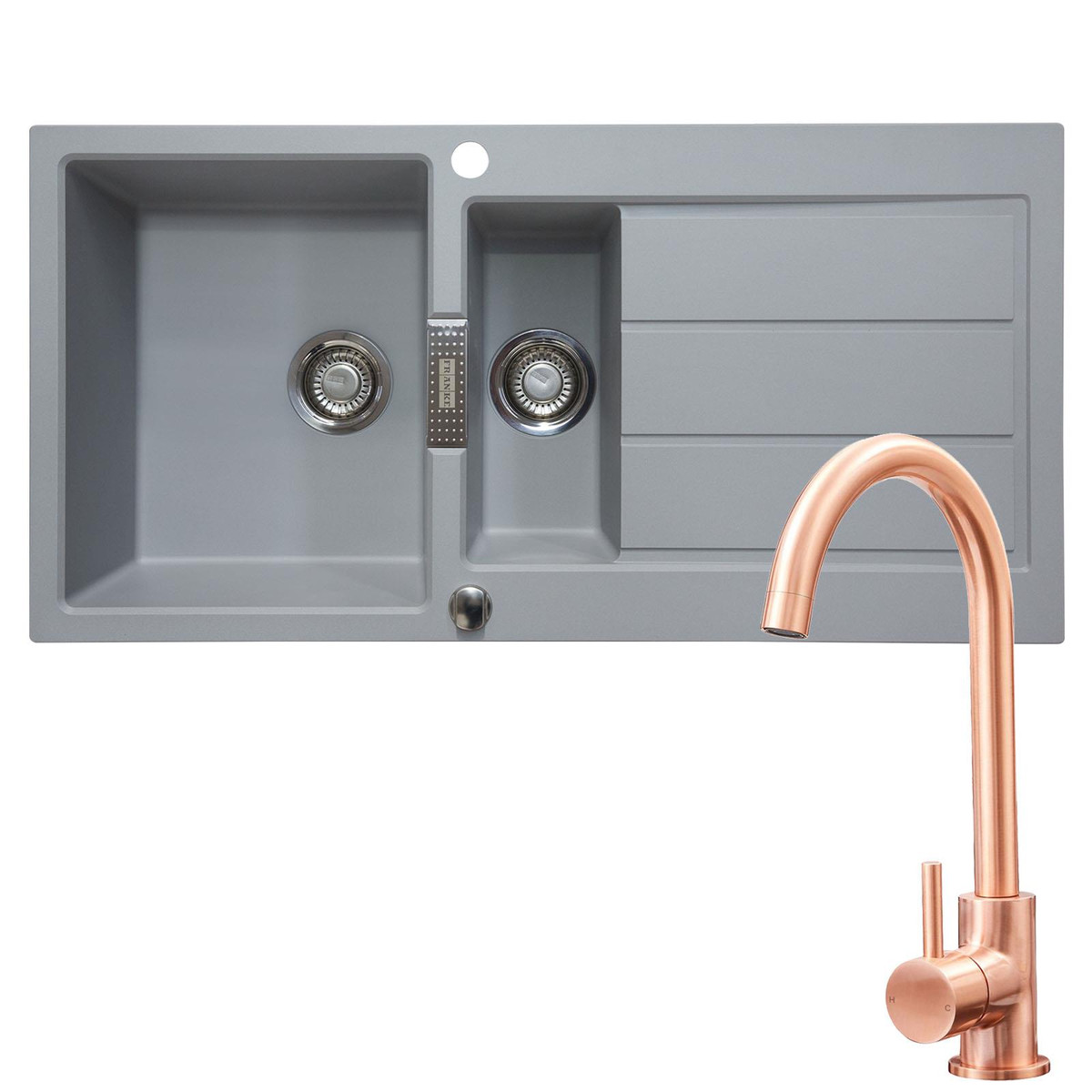 The S2D651TS-KT6CU pack consists of a 1.5 bowl stone grey reversible kitchen sink and an SIA KT6CU mixer tap. The sink is manufactured from Tectonite, a revolutionary composite material that has the strength and durability of granite, without the heavyweight and brittleness. Franke is a leading expert in producing high-quality kitchen appliances and they continue to blend style and functionality in all of their sinks. This package comes with the SIA KT6CU single-lever mixer tap which has a stylish copper finish that complements the sink perfectly.