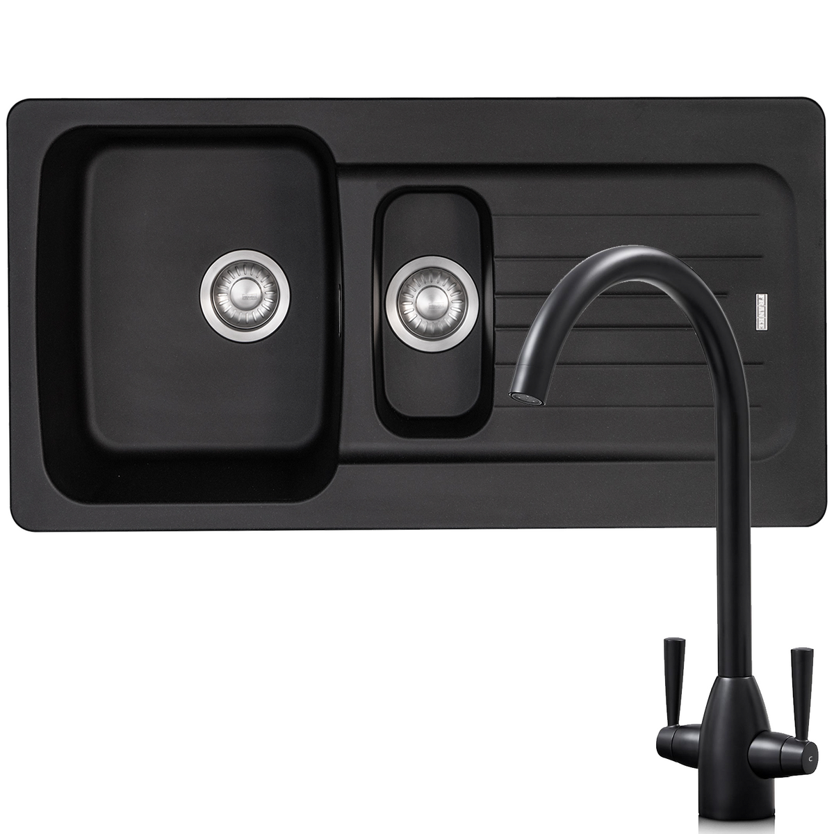 The AVETA15-KT5BL pack comprises of a stunning Franke Tectonite sink and an SIA KT5BL Black Swan Neck Contemporary Twin Lever Kitchen Mixer Tap. Manufactured from Tectonite, the sink is resistant to stains, scratches and heat and is a revolutionary material that is as strong as granite without the heavyweight. The sink is complemented by the SIA KT5BL tap that has a contemporary black finish that will add an elegant look to any kitchen.