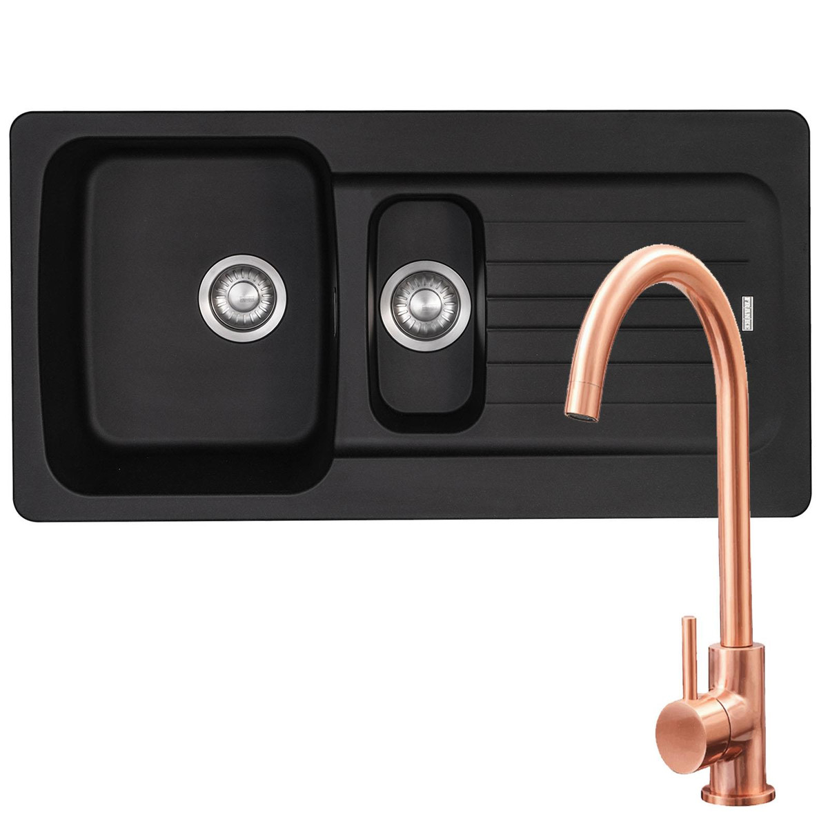 The AVETA15-KT6CU pack comprises of a stunning Franke Tectonite sink and an SIA KT6CU Copper Swan Neck Single Lever Modern Monobloc Kitchen Mixer Tap. Manufactured from Tectonite, the sink is resistant to stains, scratches and heat and is a revolutionary material that is as strong as granite without the heavyweight. The sink is complemented by the SIA KT6CU tap that has a copper finish that will add an elegant look to any kitchen.