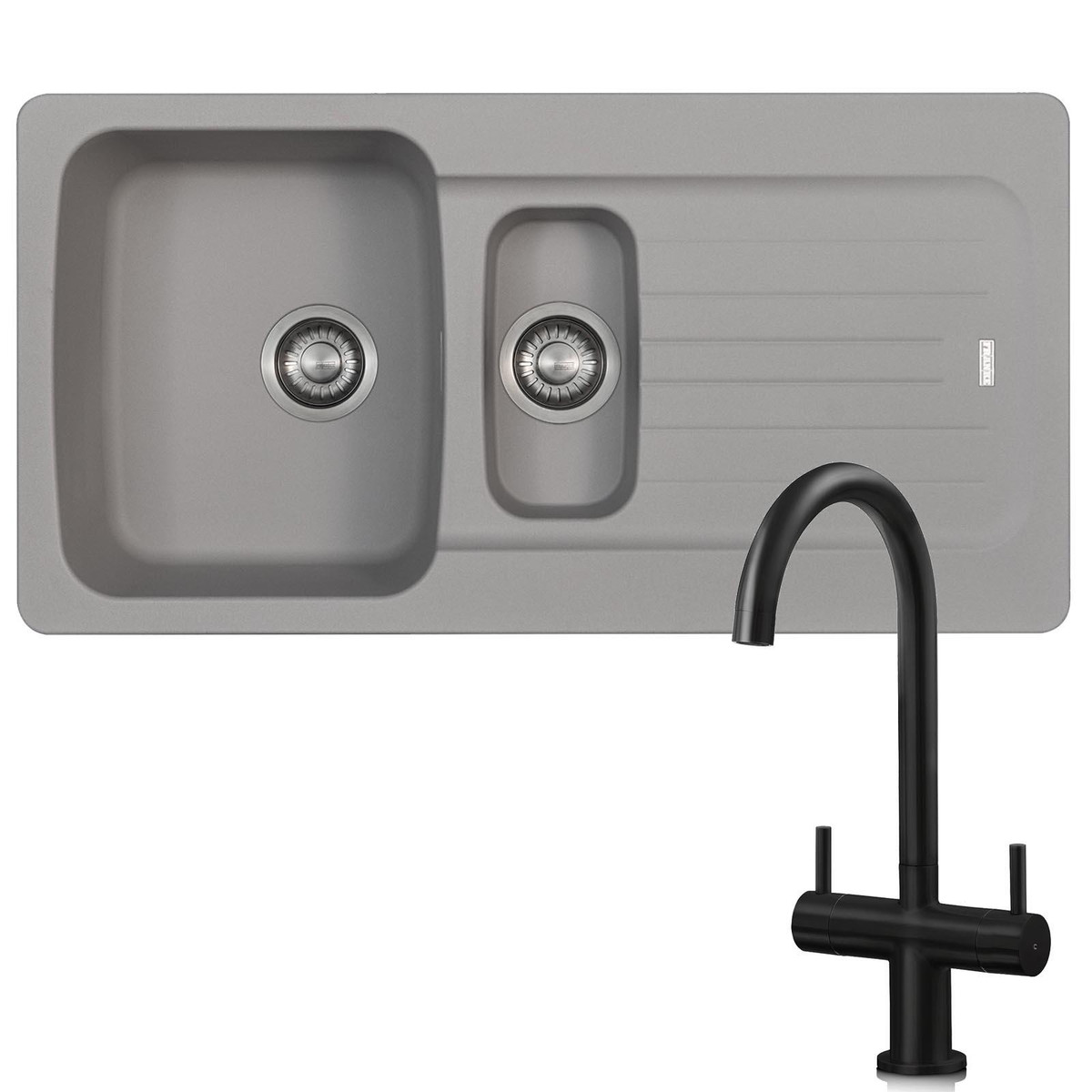 The AVETA15STONE-KT3BL pack comprises of a stunning Franke Tectonite sink and an SIA KT3BL Black Twin Lever Contemporary Monobloc Kitchen Mixer Tap. The sink is resistant to stains, scratches and heat and with a large single bowl is perfect in your kitchen or utility room. Tectonite is a revolutionary material that is as strong as granite without the heavyweight or brittleness. The sink is complemented by the SIA KT3BL tap that has a modern, black finish that will add a contemporary look to any kitchen.