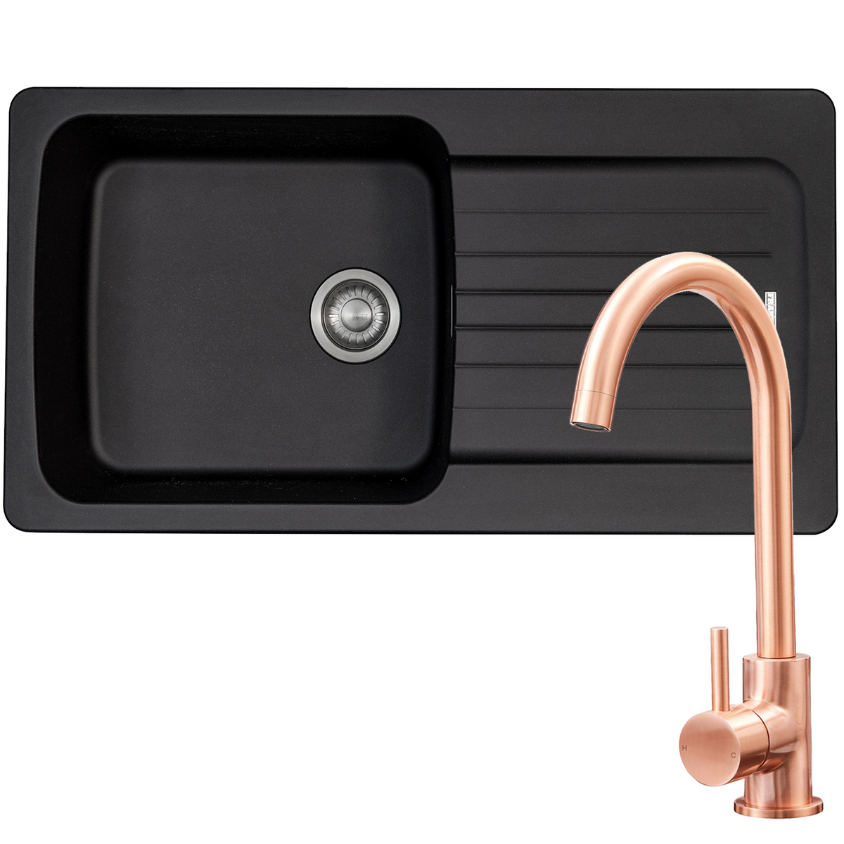 The AVETA10-KT6CU pack comprises of a stunning Franke Tectonite sink and an SIA KT6CU Copper Swan Neck Single Lever Modern Monobloc Kitchen Mixer Tap. The sink is resistant to stains, scratches and heat and features a large single bowl is perfect in your kitchen or utility room. Tectonite is a revolutionary material that is as strong as granite without the heavyweight or brittleness. The sink is complemented by the SIA KT6CH tap that has a modern, copper finish that will add a contemporary look to any kitchen.