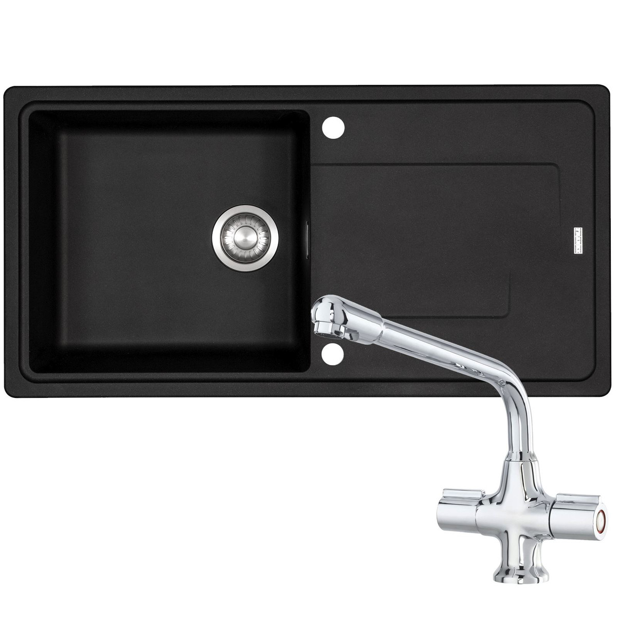 Franke Gemini GMD611BL 1.0 Bowl Black Tectonite Reversible Sink And Waste Kit