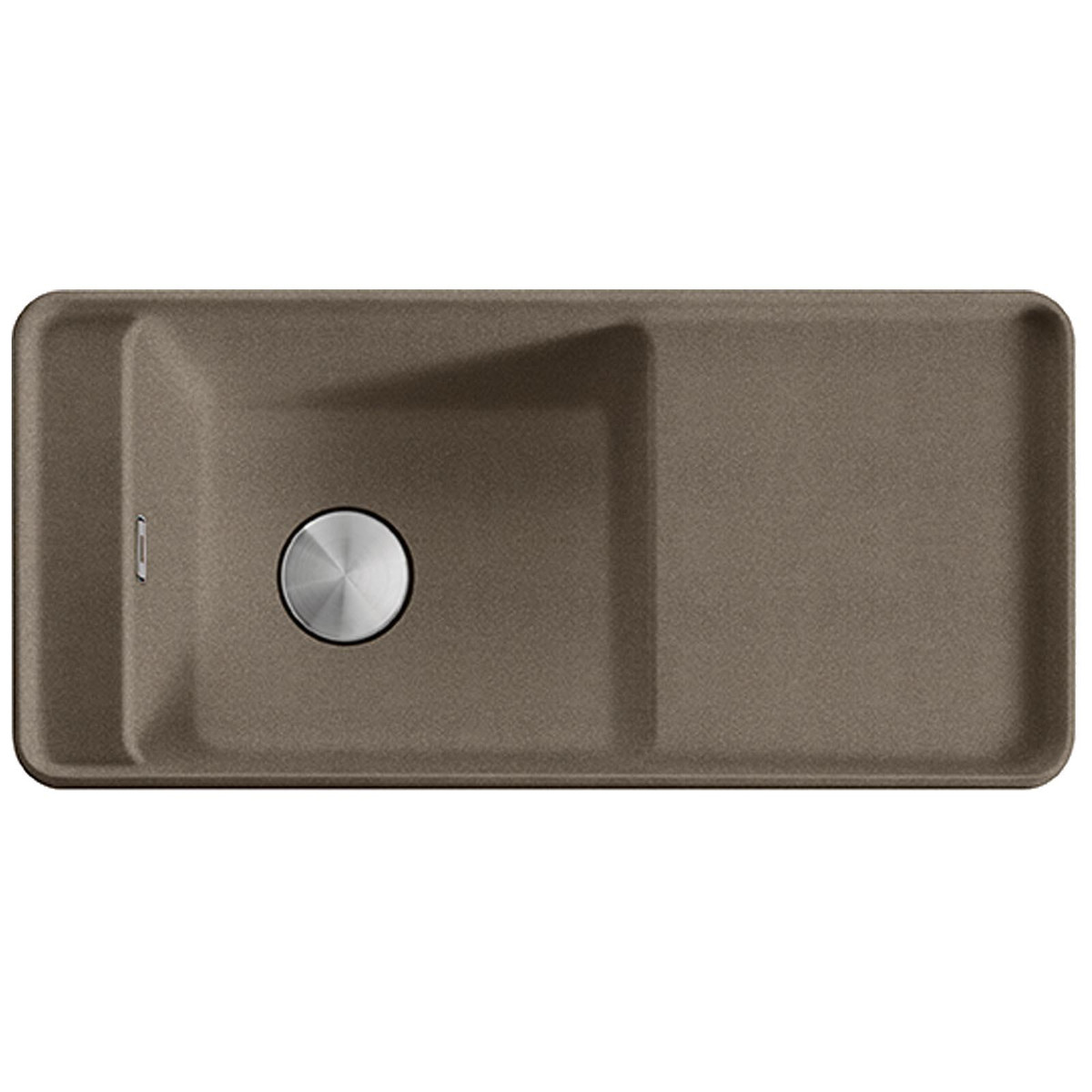This sink is part of Franke's Super Metallic range. The metallic look is a popular, current trend for kitchen surfaces which sees glittering color particles mixed into the Fragranite during the manufacturing process, ensuring long-lasting sparkle with no risk of the color fading.