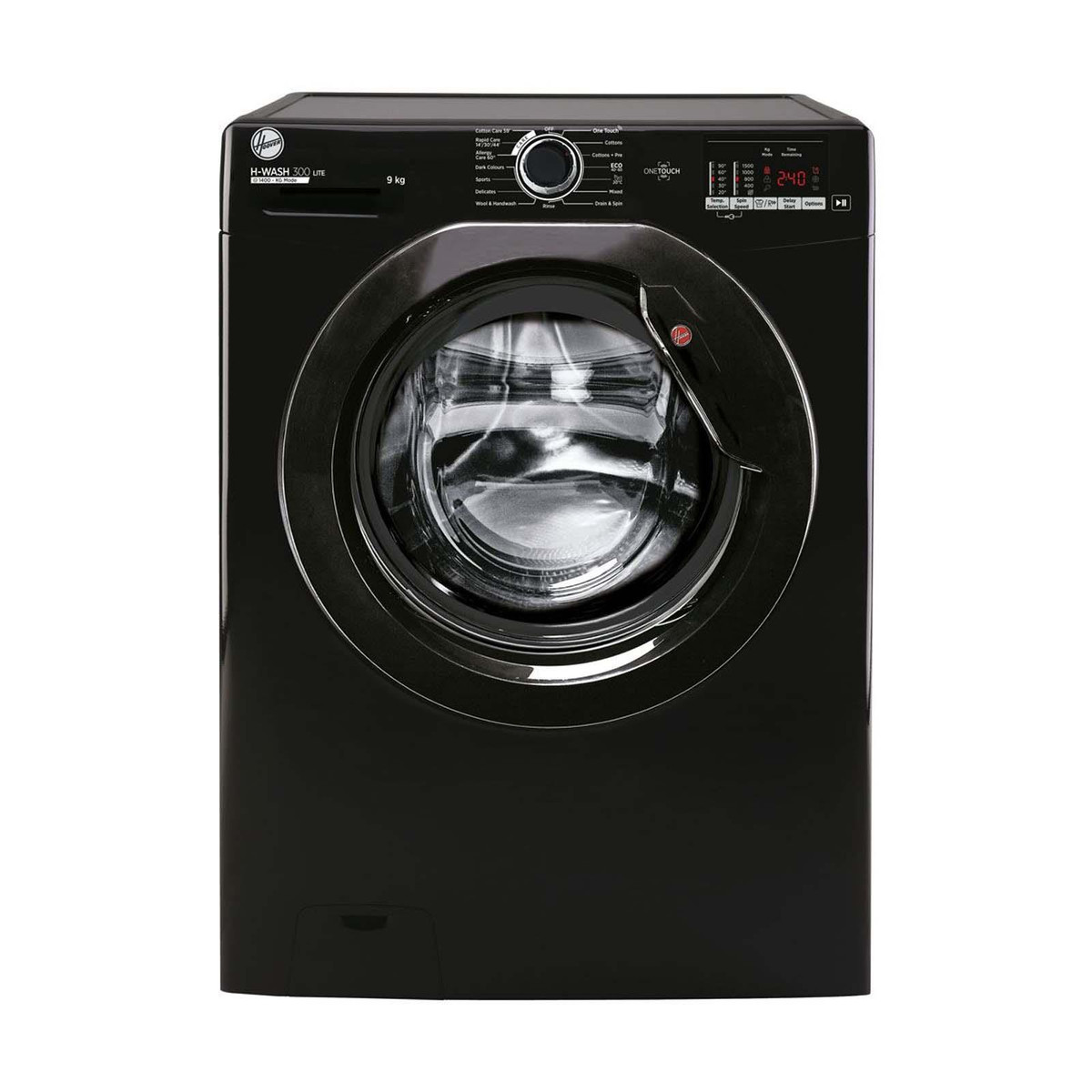 This black washing machine from Hoover has a large 9kg capacity and a fast 1500 rpm spin speed, perfect for any household. It features quick wash cycles, a delay start timer and is smart-phone compatible using NFC. The fantastic KG mode weighs the load at the start of the cycle and adjusts the time of the programme to save time, water and energy!