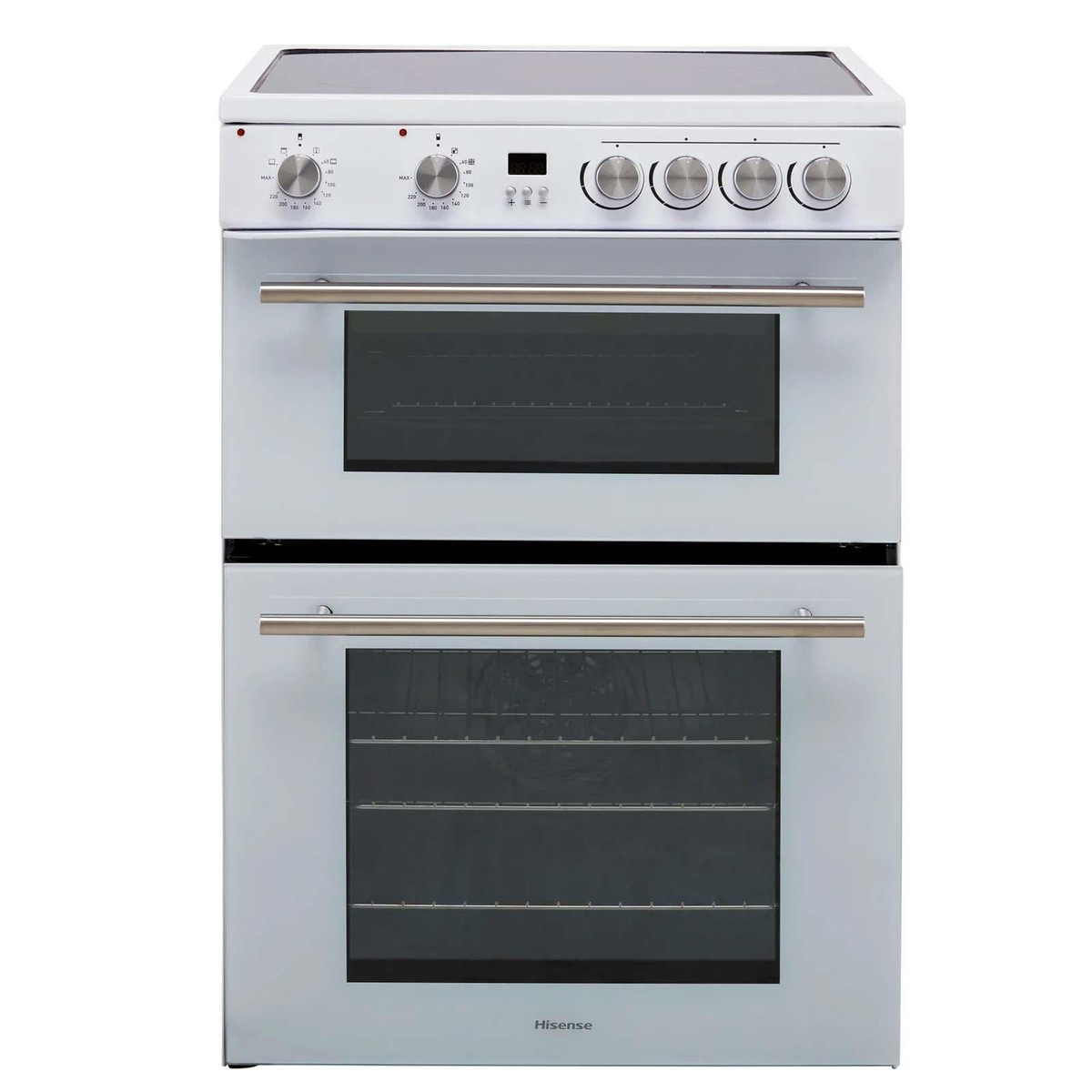 The Hisense HDE3211BWUK ceramic cooker, it has 2 ovens, with the main one being multifunctional. There are also 2 automatic programmes, so you'll enjoy perfect results every time. Thanks to its 4 zone ceramic hob, you can easily cook lots of meals at once. Plus, the catalytic liners absorb grease and food spills for simple and easy cleaning.