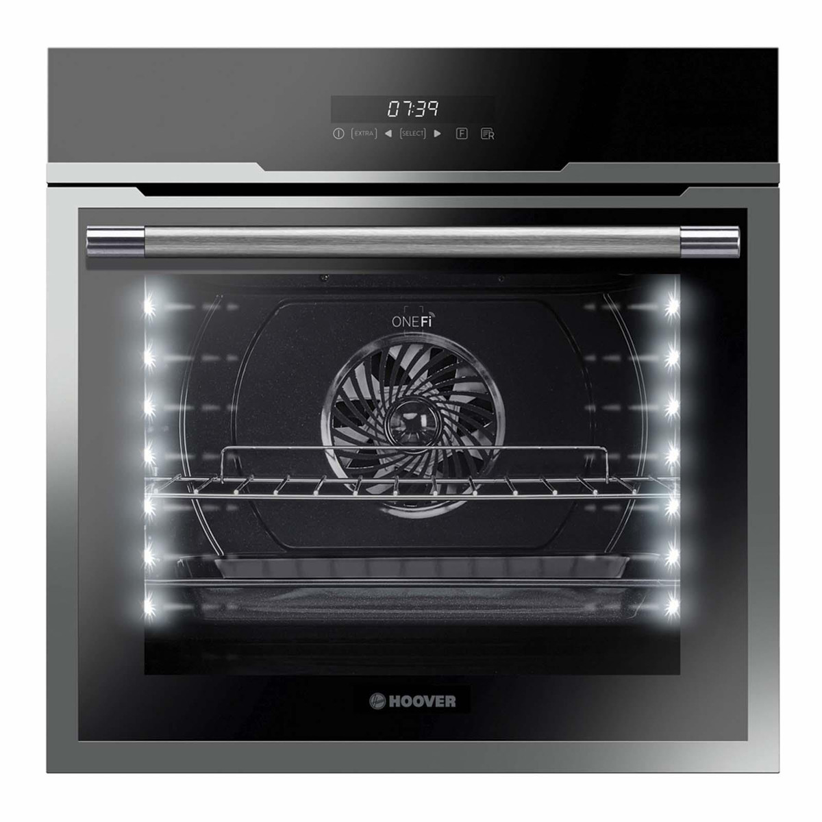 The Hoover H-Oven 500 PLUS HOZ7173IN WF/E is an all round stylish and functional built-in single oven. With a modern black glass front and stainless steel interior it will blend in with any kitchen’s décor. It has the ability to be installed beneath a worktop or into a cupboard unit giving you maximum flexibility. It is WIFI enabled allowing full control of dinner time when you’re out of the house. The soft touch controls and 9 cooking programs make cooking quick and simple.