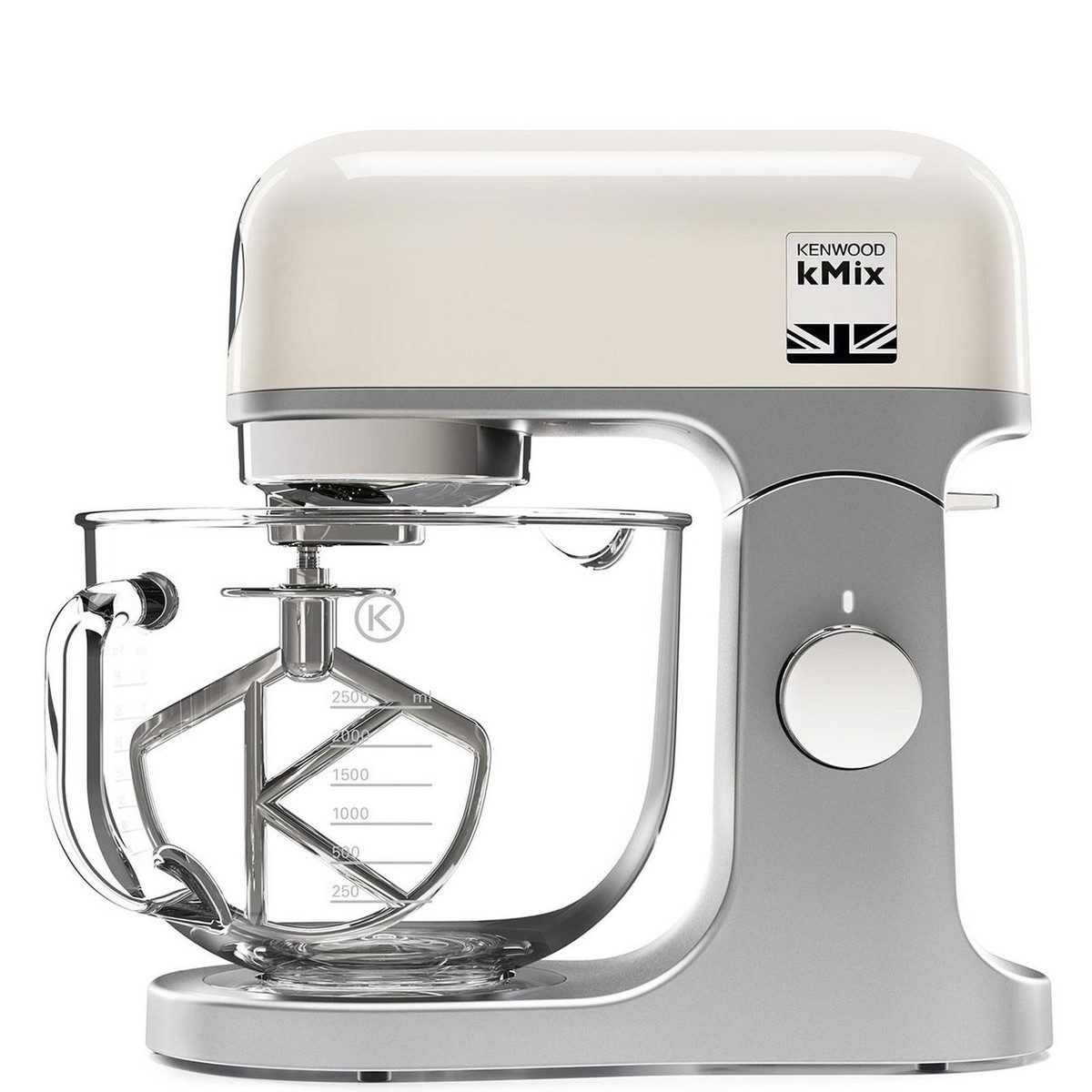This stand mixer comes with three different attachable tool heads: the classic and versatile Kenwood K beater, a balloon whisk header to aerate your mixtures, and a dough hook tool for bread dough. With a sensitive dial control and a powerful 1000W motor, you have full and precise control over your mixing, adjusting the speed precisely as you go along, which you can judge easily thanks to the transparent glass mixing bowl.