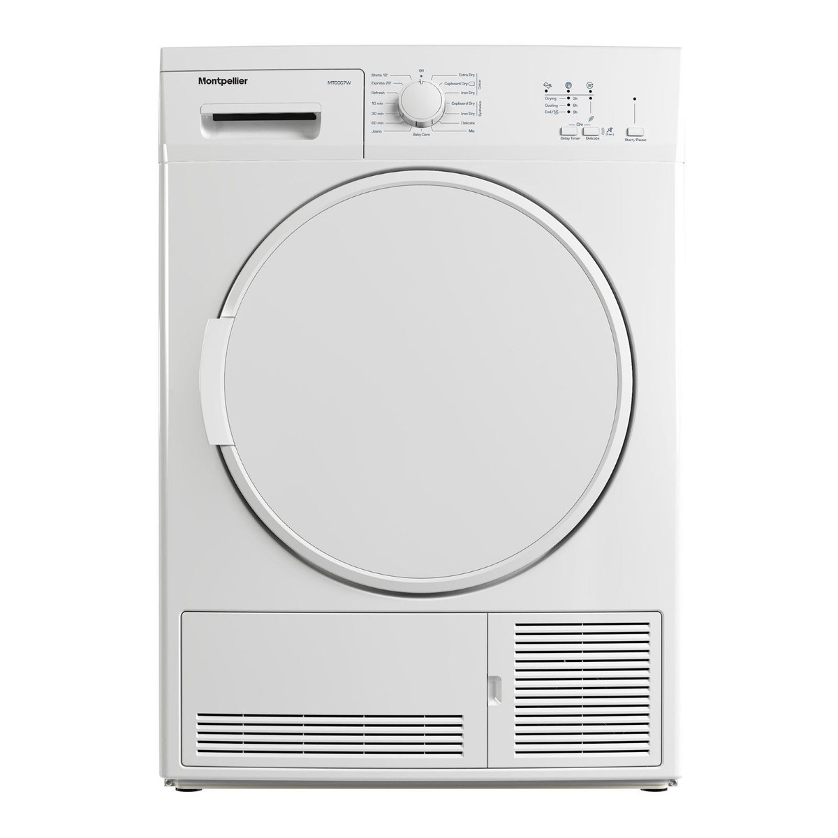 The Montpellier MTDSC7W 7kg condensing tumble dryer allows you to power through the laundry. Using its clever sensor technology, this tumble dryer detects when your clothes are dry and ends the cycle automatically even if it still has time remaining. This means that your clothes are ready quicker, and you will save money on household energy bills. With a handy pause feature and a delay timer from 3-9 hours, you can set your drying cycle to suit you.