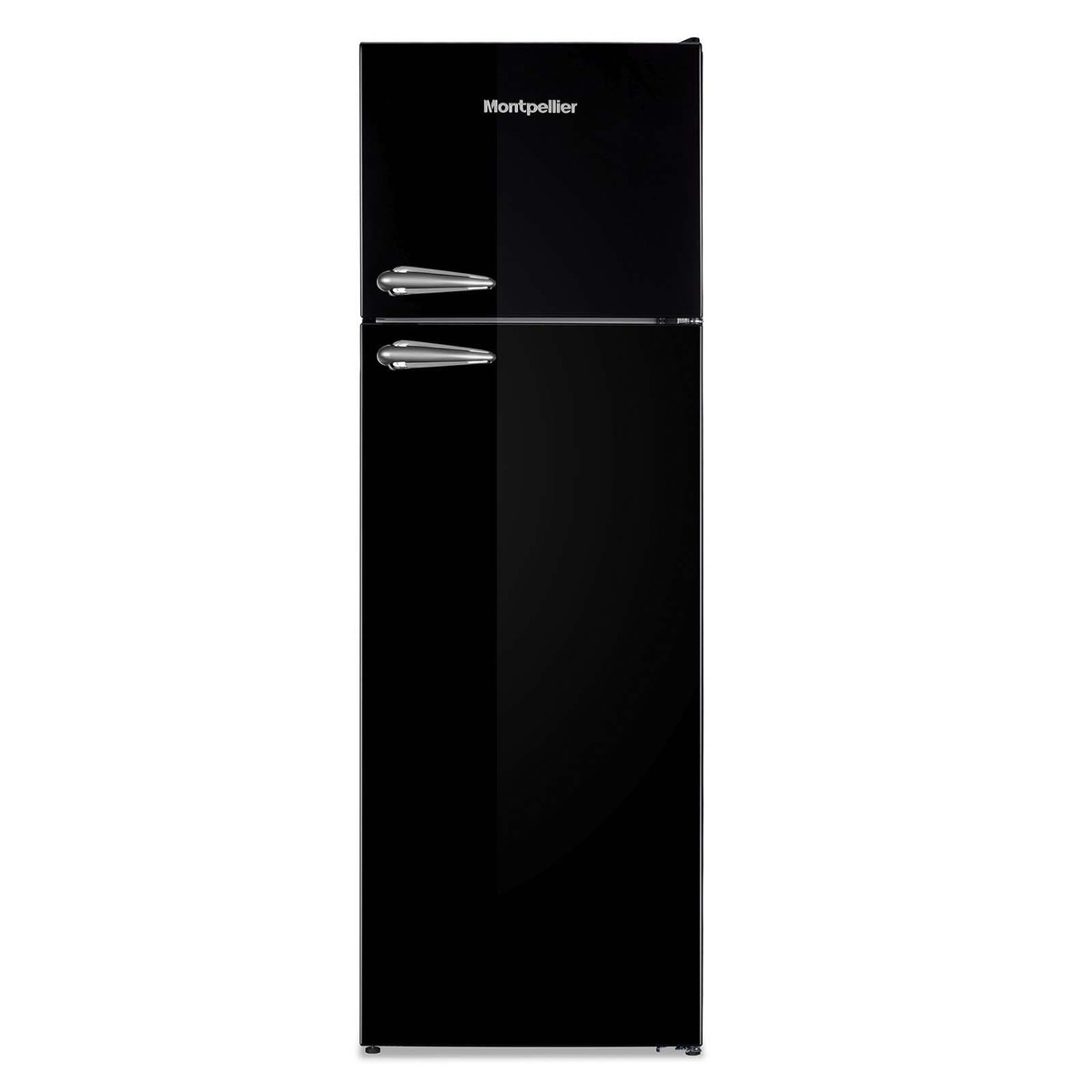 The Montpellier MAB346K is a black fridge freezer with a classic 1950's retro-style that brings a real wow factor to any modern or traditional kitchen. With three adjustable glass shelves, a large salad crisper drawer and a full width chrome wine rack, there is ample space for a variety of foods. The door also offers varying racks for tall bottle storage and small jars and packets. Above the fridge, the top mount freezer is deceptively large, giving you lots of options for well stacked frozen foods.