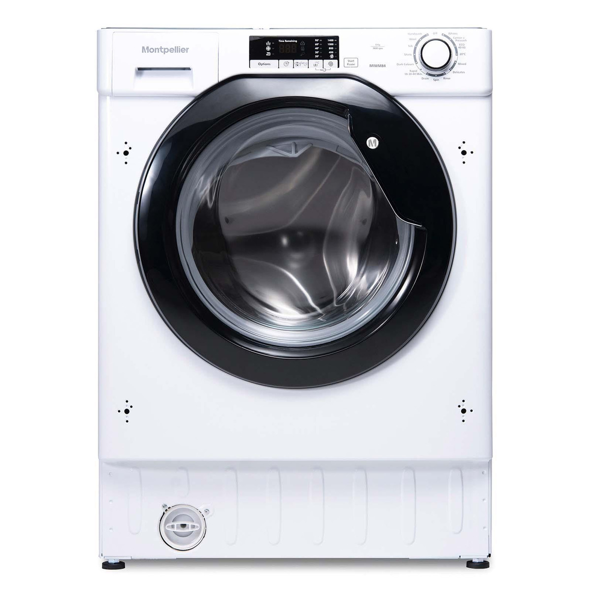 The Montpellier MIWM84 is an integrated washing machine that sits neatly behind a cupboard door for a minimalistic look. This model has a 8Kg capacity, 1400rpm spin speed and a range of programmes to ensure your clothes are laundered just how you like them. LED progress lights mean you can track where the wash cycle is, and a handy 24 hour delay start feature gives you control over when your programme finishes.