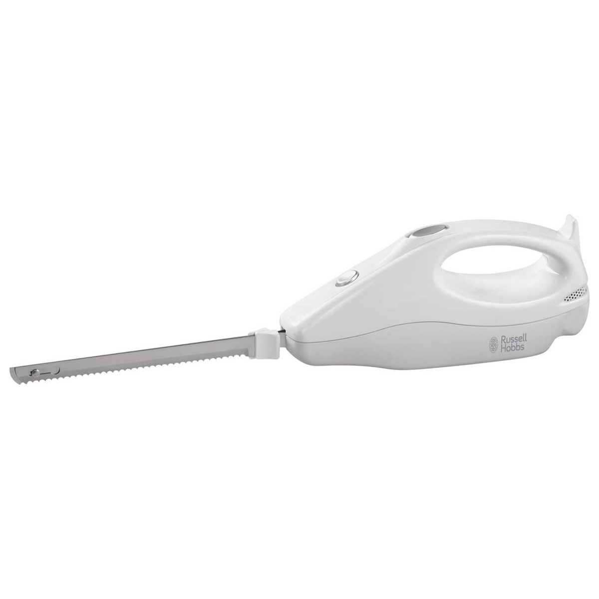 Make slicing through tough joints of meat a breeze with the Russell Hobbs 120W Carving Knife. Its 203mm serrated blade effortlessly tackles any cut, while the comfort grip handle ensures a secure and comfortable hold. This carving knife is designed with your safety in mind, featuring a thumb-tip control button and power and blade release buttons for hassle-free operation. When you're done, the easy wrap cord storage keeps your kitchen clutter-free. Say goodbye to struggling with carving – the Russell Hobbs Carving Knife makes it easy and efficient.