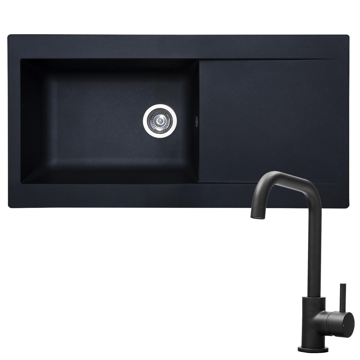 SIA DELTA10BL 1.0 Bowl Black Composite Reversible Inset Kitchen Sink & Waste Kit