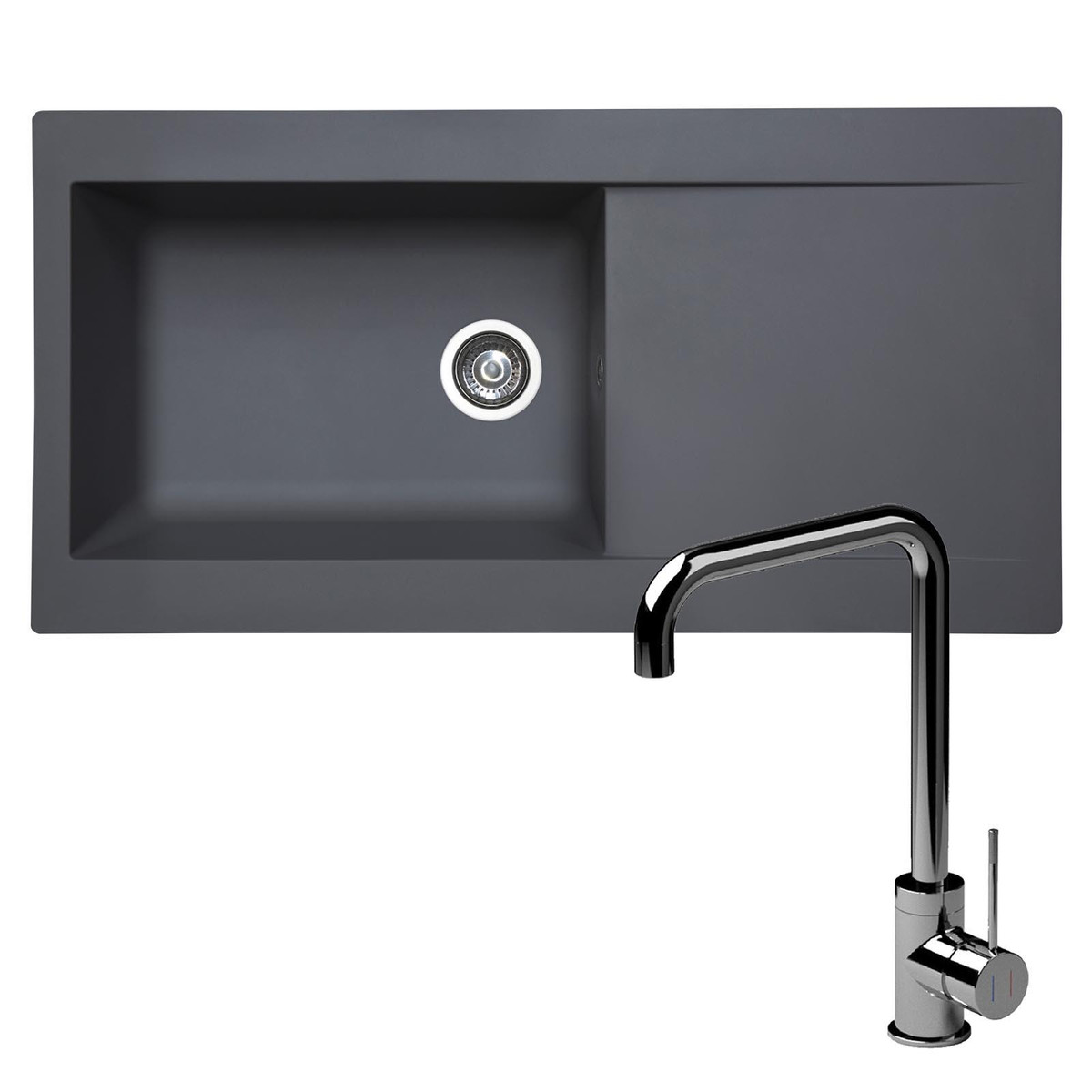 SIA DELTA10GR 1.0 Bowl Grey Composite Reversible Inset Kitchen Sink & Waste Kit